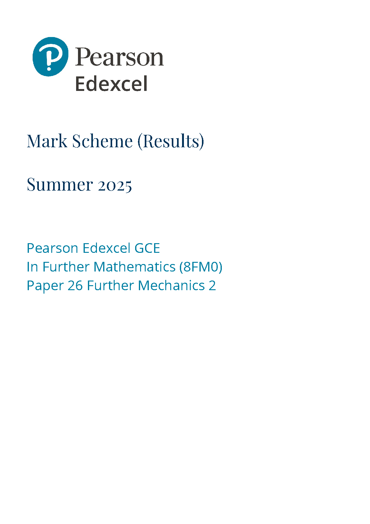 2025 Pearson Edexcel AS Level Further Mathematics Mark Scheme Paper 26 (8FM0/26: Further Mechanics 2)