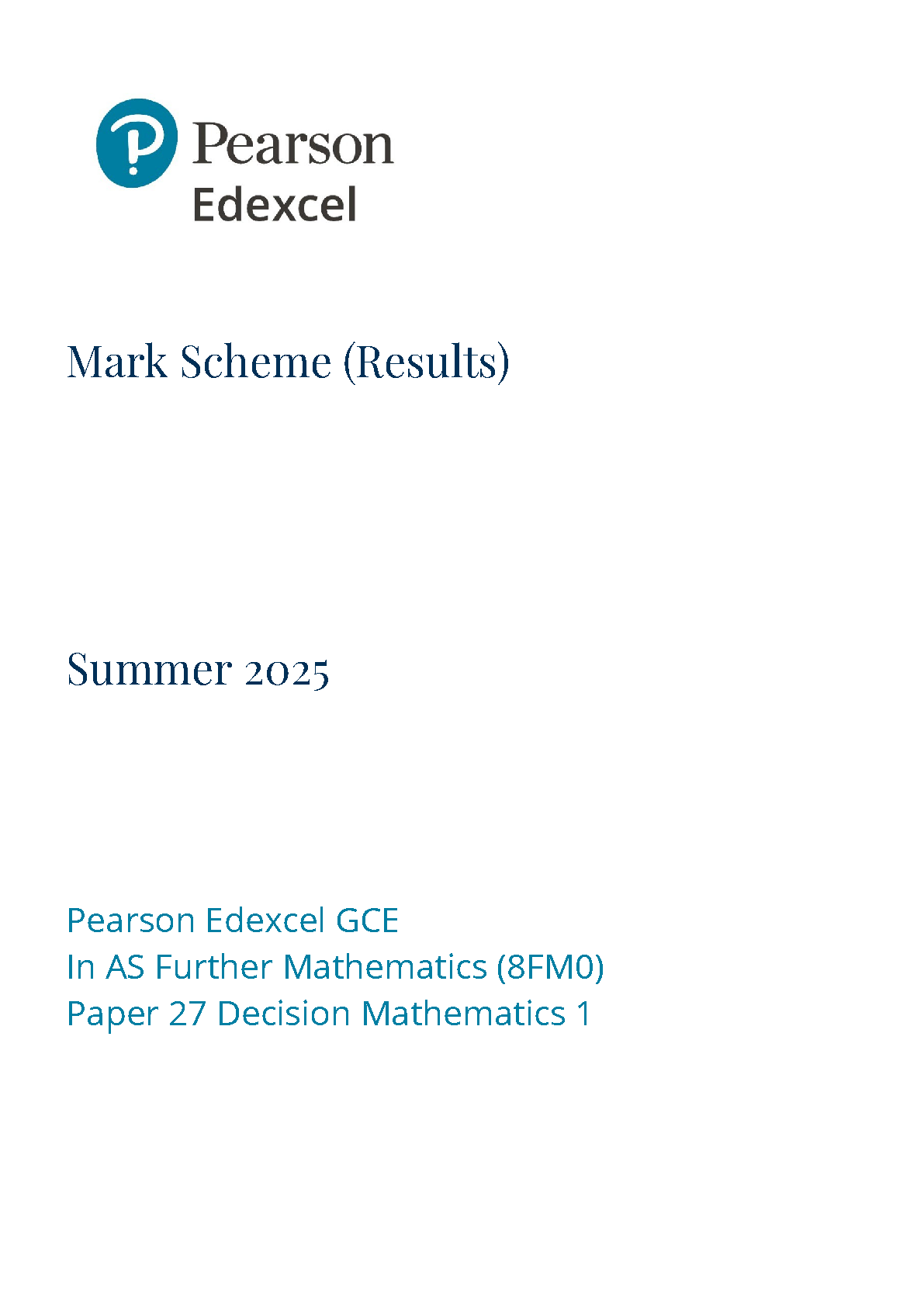 2025 Pearson Edexcel AS Level Further Mathematics Mark Scheme Paper 27 (8FM0/27: Decision Mathematics 1)