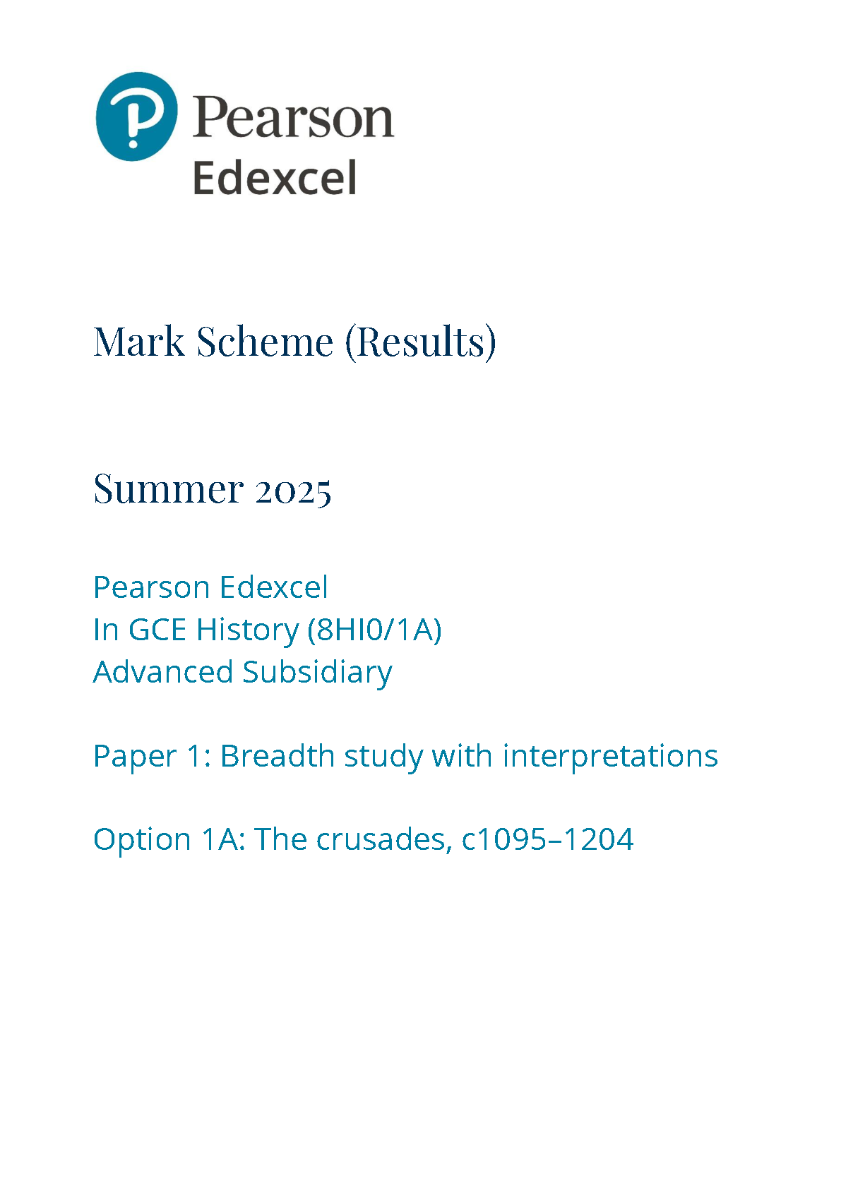 2025 Pearson Edexcel AS Level History Mark Scheme Paper 1 (8HI0/1A: Breadth study with interpretations)