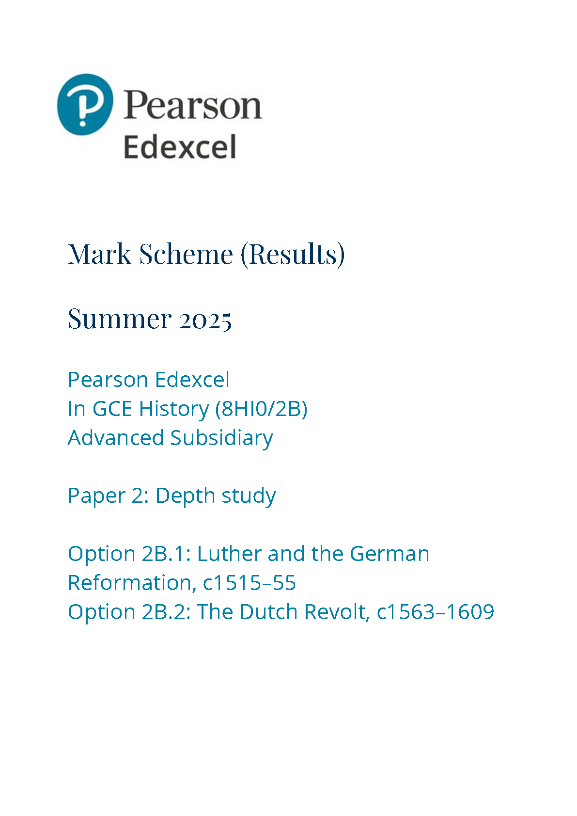2025 Pearson Edexcel AS Level History Mark Scheme Paper 2 (8HI0/2B: Depth study)