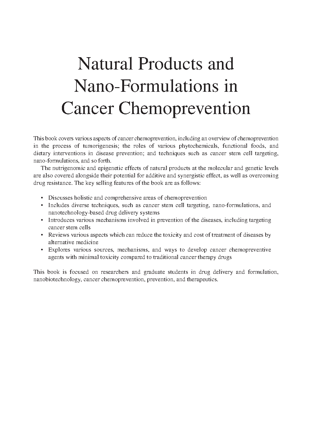 Achieve academic excellence with the latest 2025/2026 study resource on cancer prevention. This guide, 'Natural Products and Nano-formulations in Cancer Chemoprevention, 1st Edition,' edited by Shiv Kumar Dubey, offers a deep dive into the revolutionary field of bionanotechnology. It provides a comprehensive overview of how natural compounds and advanced nano-formulations are utilized in cancer chemoprevention. Expertly curated to be your ultimate study companion, this resource is designed to help you master complex topics and pass your exams on the first attempt, eliminating the need for resits. Essential for students in biotechnology, pharmacology, and medical sciences.