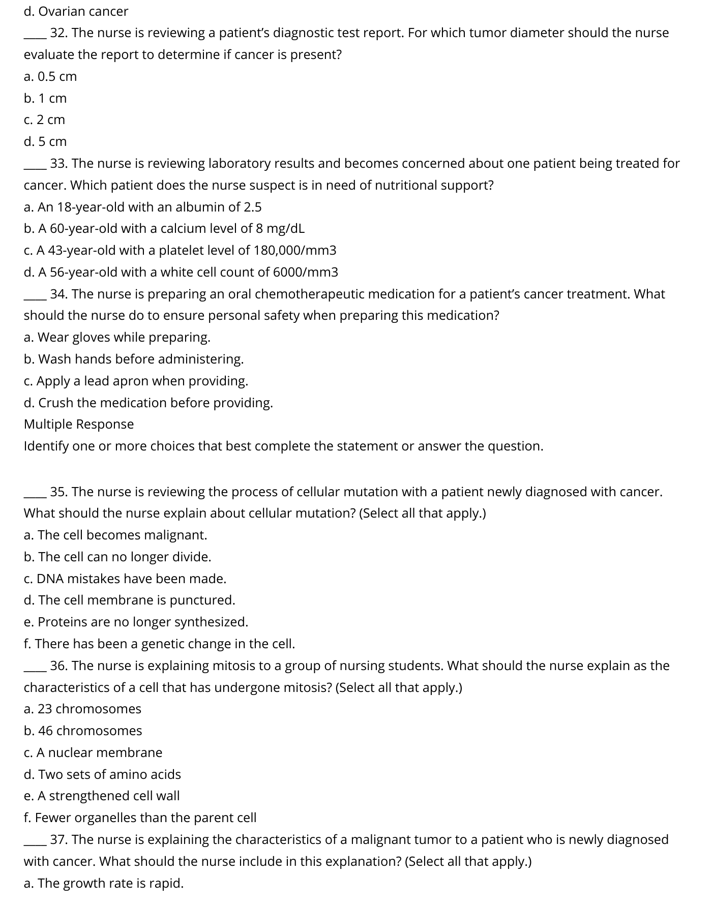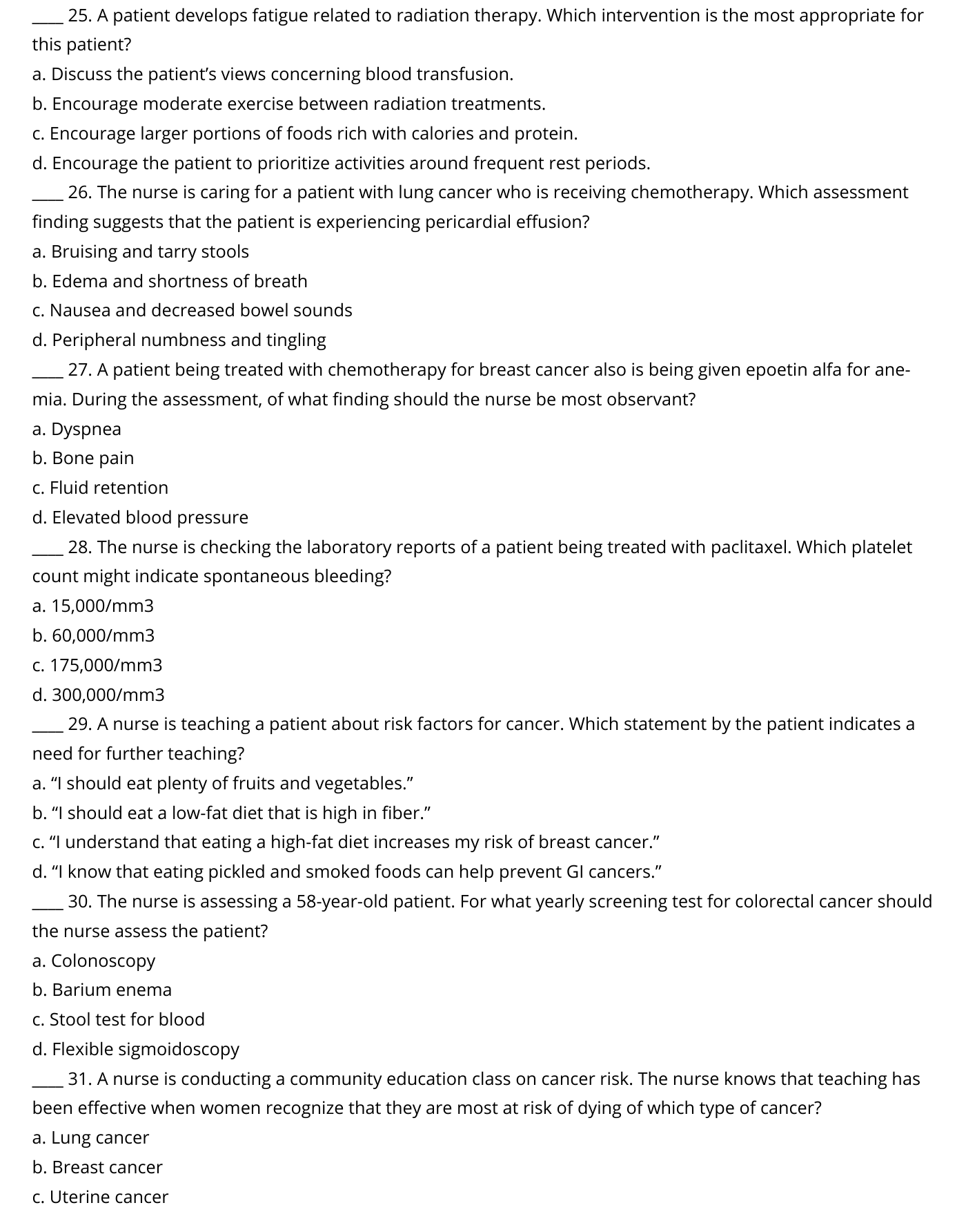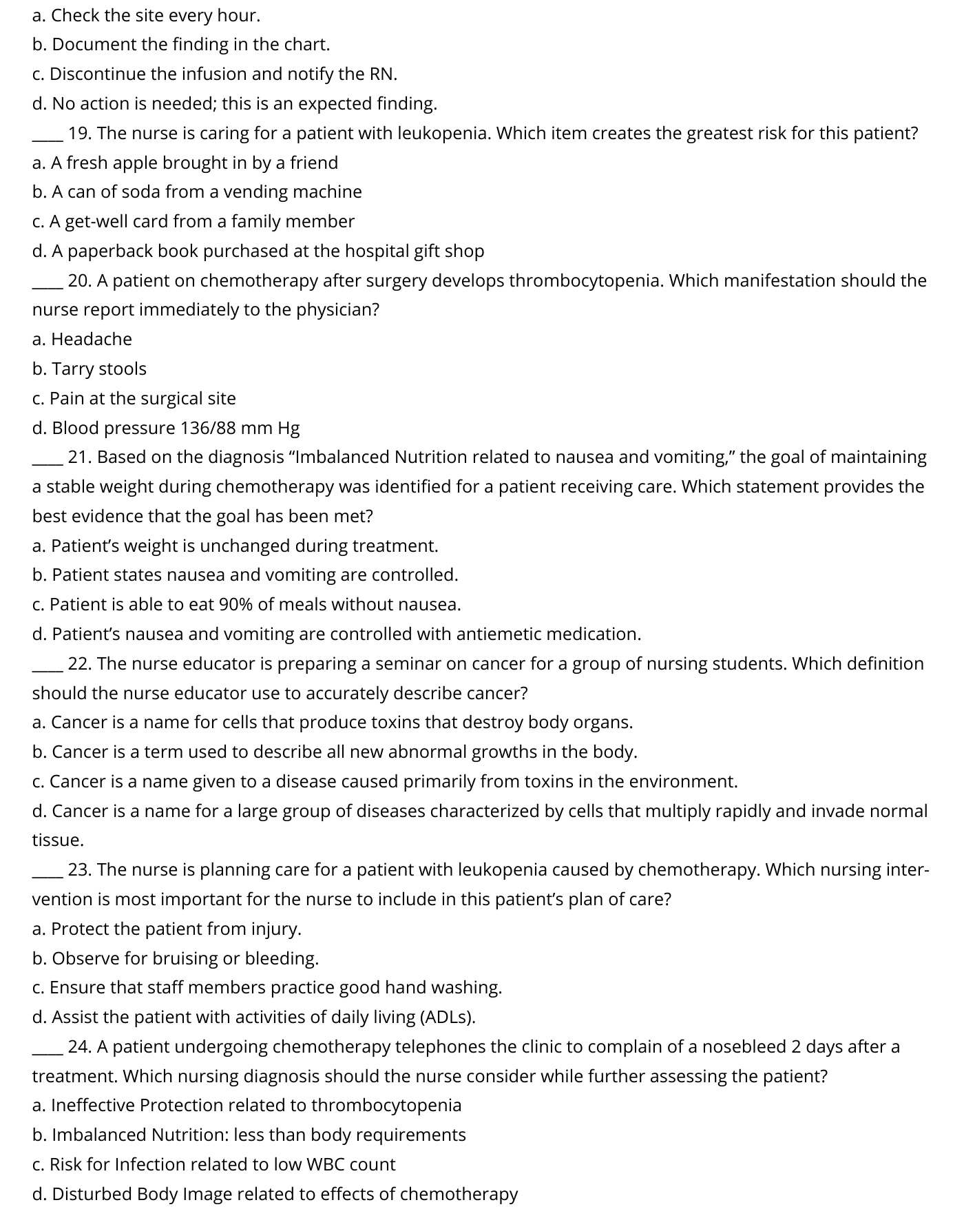 TEST BANK FOR NURSING (Chapter 11. Nursing Care of Patients With Cancer)