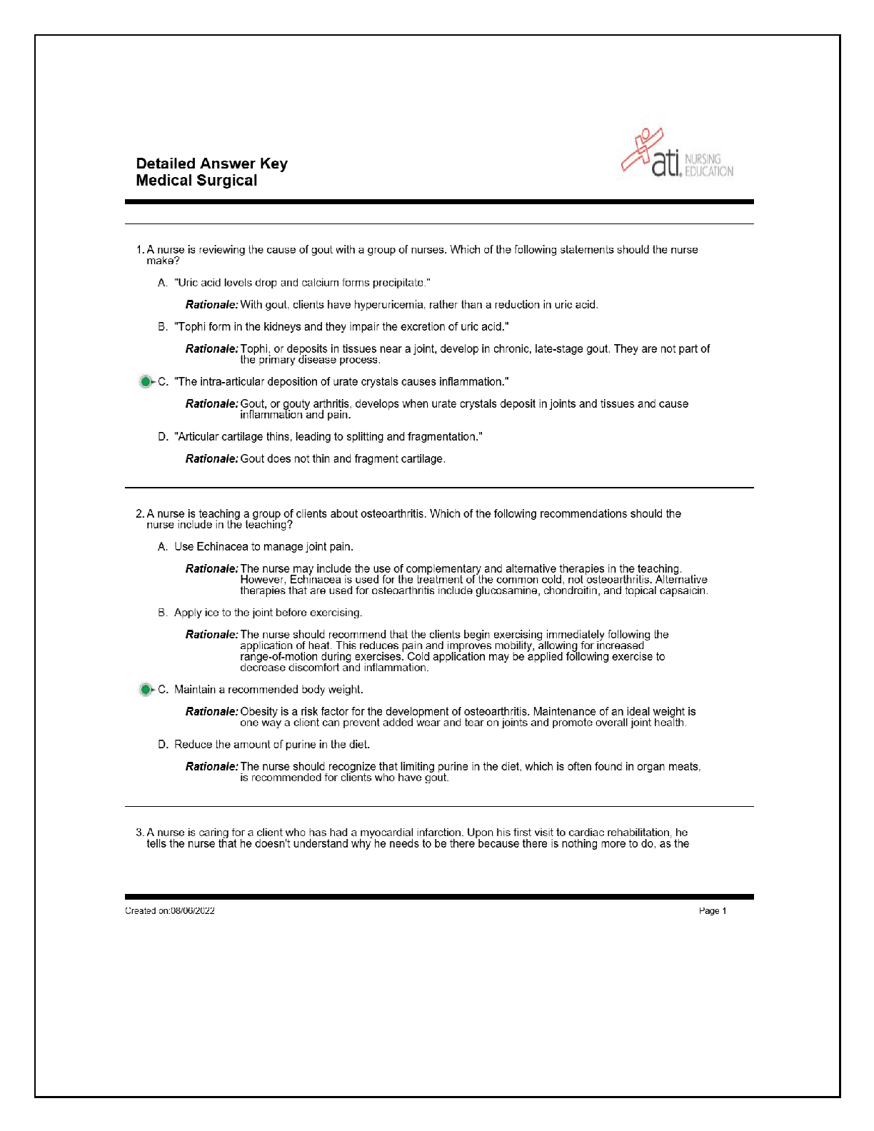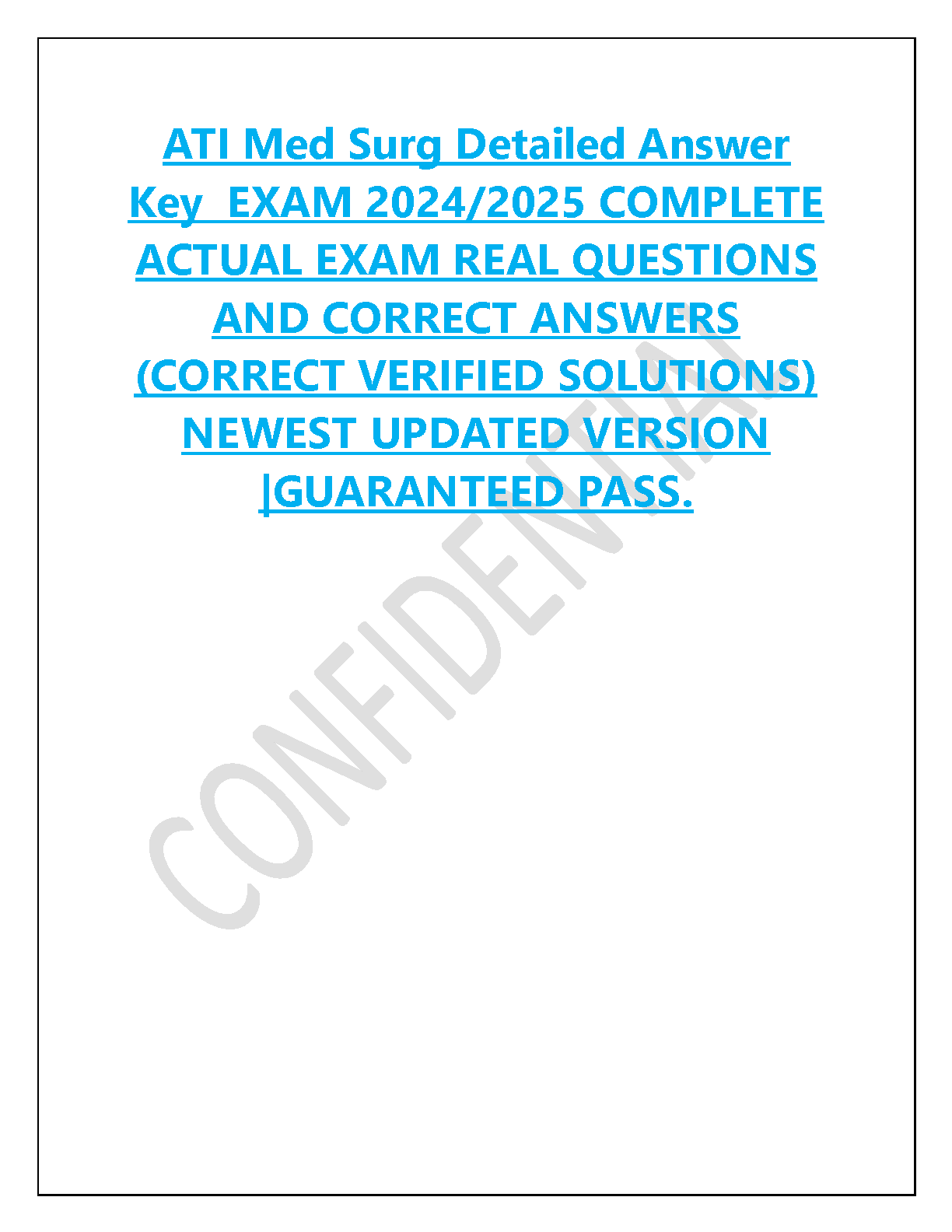 ATI Med Surg Exam 2024-2025: Comprehensive Test Bank with Verified Questions & Detailed Answer Key