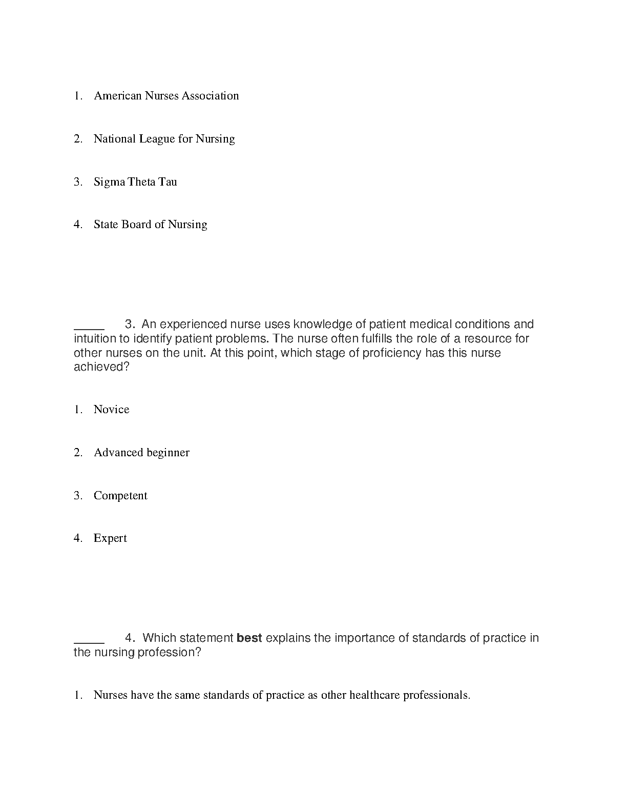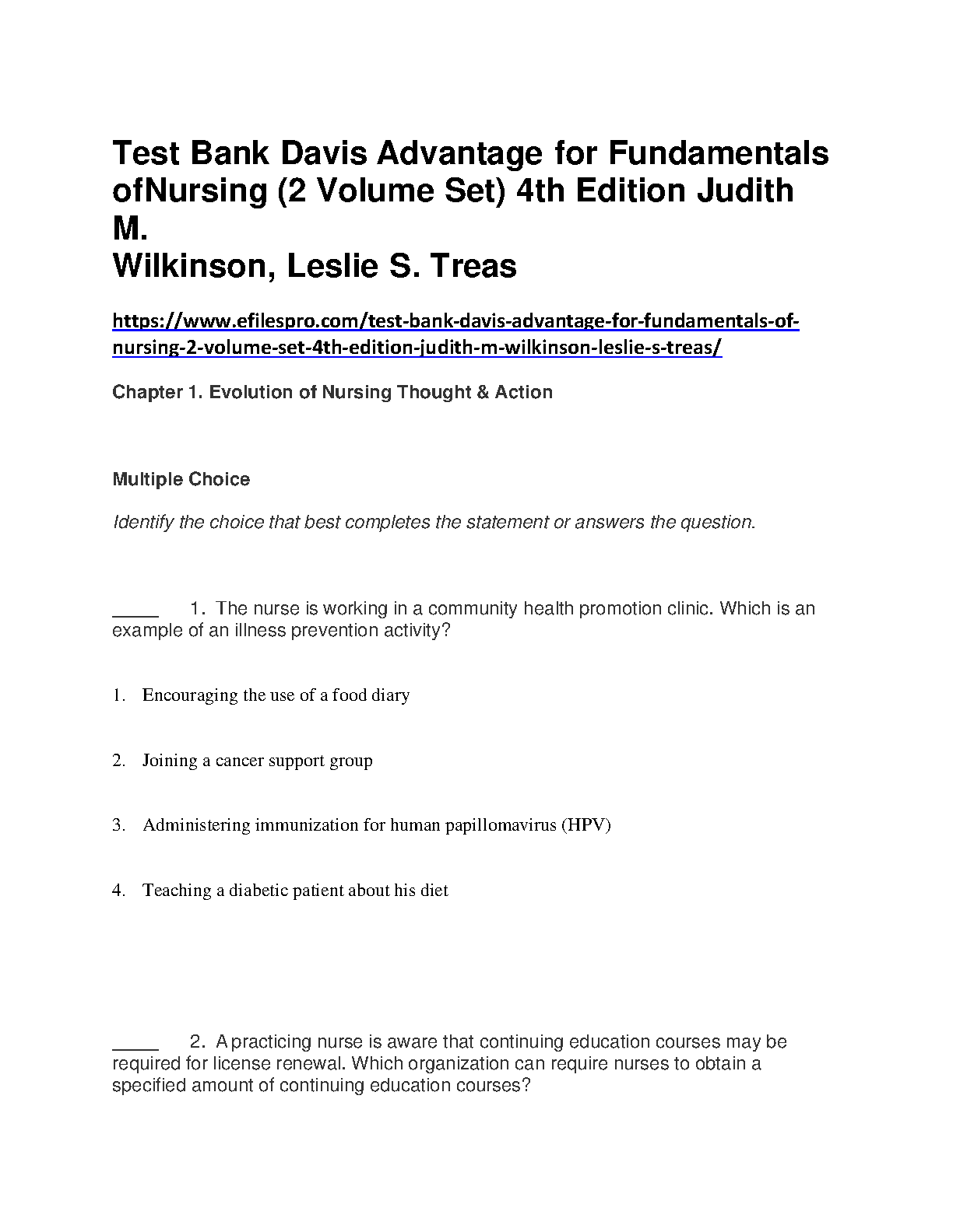 Test Bank for Davis Advantage for Fundamentals of Nursing, 4th Edition by Judith M. Wilkinson, Leslie S. Treas, and Karen L. Barnett