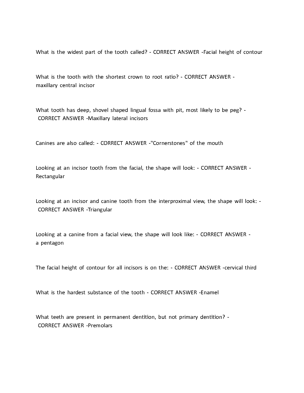 Ace your DH 105 Dental Anatomy Midterm Exam with this comprehensive test bank for the 2025/2026 academic year. This essential study guide features a complete set of exam-style questions with verified correct answers, covering all critical topics such as tooth morphology, ridges, lobes, adult dentition, and the universal numbering system. Prepare effectively, boost your confidence, and pass on your first try with this ultimate resource.