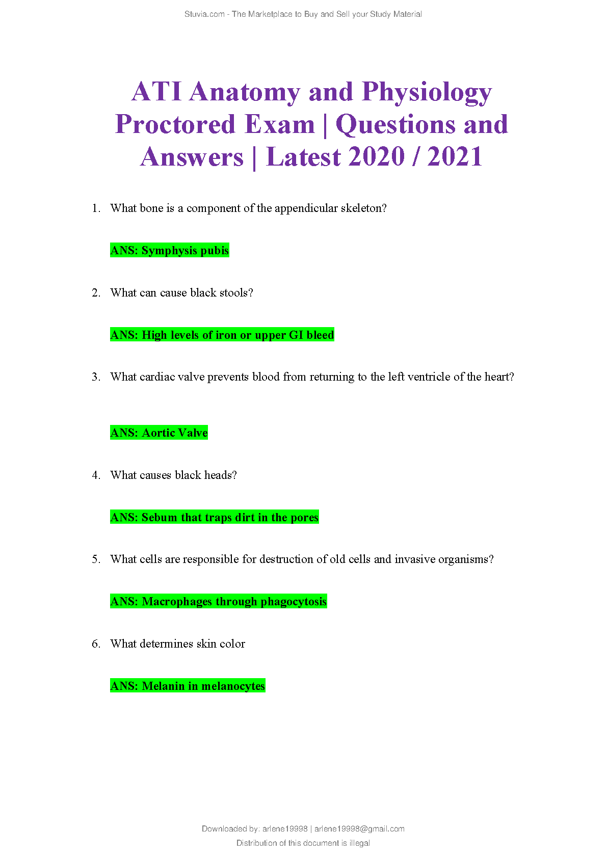 ATI Anatomy & Physiology Proctored Exam Test Bank 2025/2026 | Verified Questions and Answers for First-Attempt Success