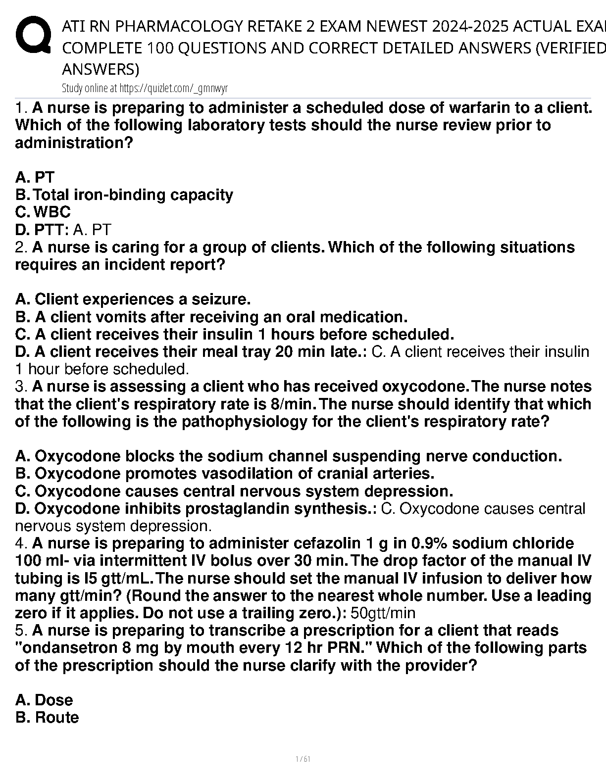 Master your nursing pharmacology course and ace the ATI RN Pharmacology Retake 2 Exam with our newest 2024-2025 test bank. This comprehensive study guide provides 100 actual exam questions, complete with correct, detailed, and verified answers. Designed to help you understand complex concepts and rationales, this resource is your key to building confidence and passing on your first try. Get the targeted practice you need to succeed in your nursing studies and professional exams.