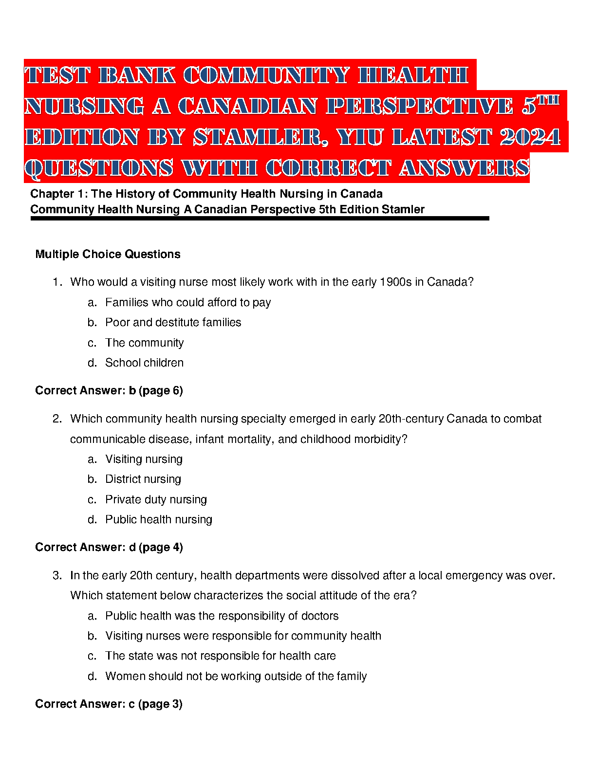 Official Test Bank: Community Health Nursing in Canada, 5th Edition by Lynnette Leeseberg Stamler & Lucia Yiu | Verified Questions & Answers