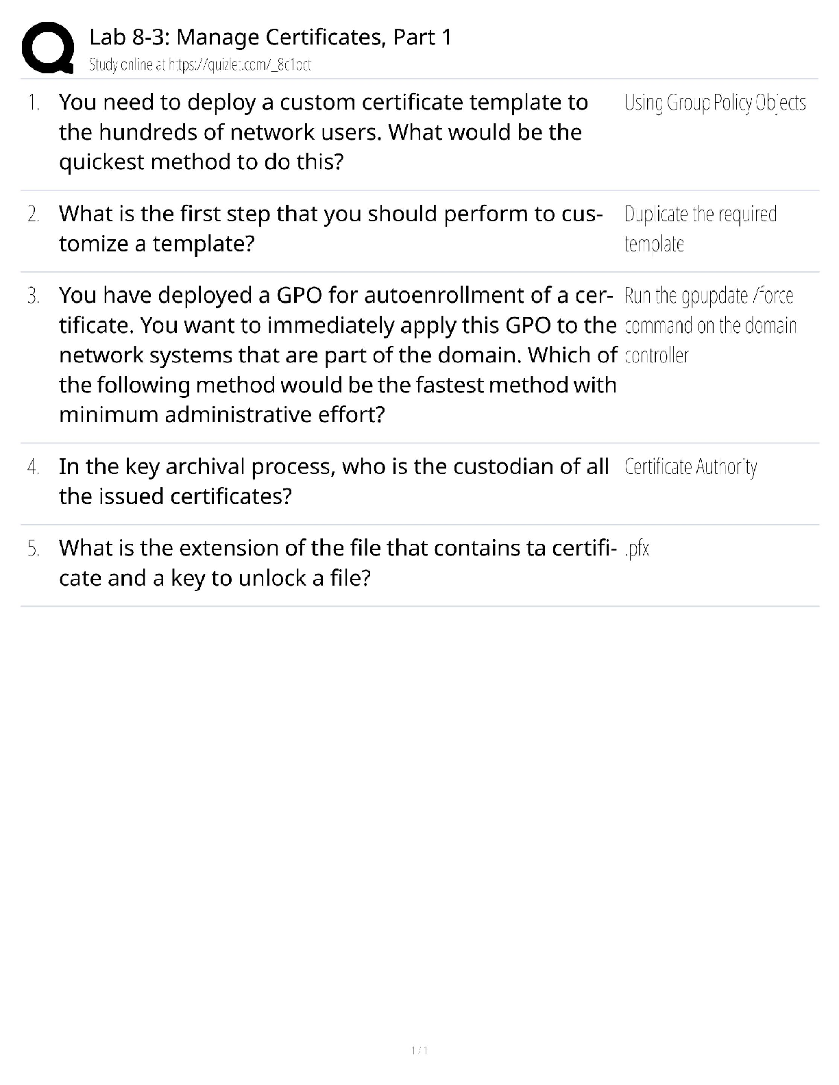 Unlock your potential and ace the MCSA 70-742 certification with this comprehensive test bank for 'MCSA Guide to Identity with Windows Server 2016' by Jason Eckert. This essential study tool features a vast collection of exam-style questions and verified answers, covering all critical course topics. Delve into practical labs on key subjects like managing certificates, deploying custom templates with Group Policy Objects (GPOs), and understanding the key archival process. This test bank is expertly crafted to help you master the material, build confidence, and pass your certification exam on the first attempt.