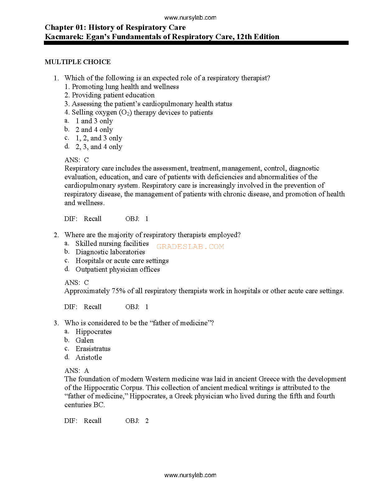 Unlock your full potential and master the core concepts of respiratory therapy with the official Test Bank for Egan's Fundamentals of Respiratory Care, 12th Edition. Authored by Kacmarek, Stoller, and Heuer, this indispensable study tool offers a comprehensive collection of exam-style questions and detailed rationales covering every chapter. It's expertly designed to help you reinforce your learning, pinpoint areas for improvement, and build the confidence needed to excel in your exams. Prepare effectively, reduce study time, and pass your respiratory care courses on the first attempt.