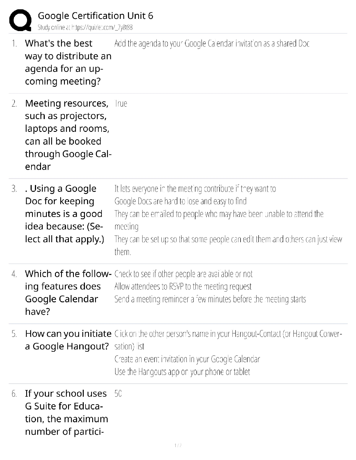 Ace your Google Certified Educator Level 1 exam with our comprehensive test bank for Unit 6. This study guide provides a complete set of questions and 100% verified answers, covering key topics like managing meetings with Google Calendar, collaborating with Google Docs, using Google Hangouts, and understanding the features of G Suite for Education. Our resource is designed to help you master the material efficiently and pass your certification test with confidence on your first attempt. Download now to get instant access and start preparing today!