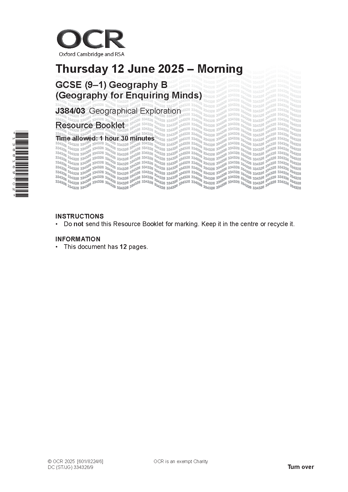 2025 OCR GCSE Geography B Geography for Enquiring Minds Resource Booklet Paper 3 (J384/03: Geographical Exploration)