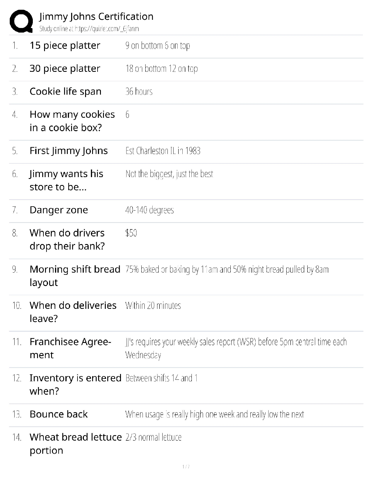 Ace your Jimmy John's certification exam with our newly updated 2025/2026 study guide. This comprehensive resource is packed with the latest questions and direct answers covering everything from platter assembly and food safety danger zones to delivery standards and company policies. It's meticulously designed to help you master the material quickly, ensuring you pass your certification test on the very first try and avoid any resits. Get the essential knowledge you need to become a certified Jimmy John's pro!