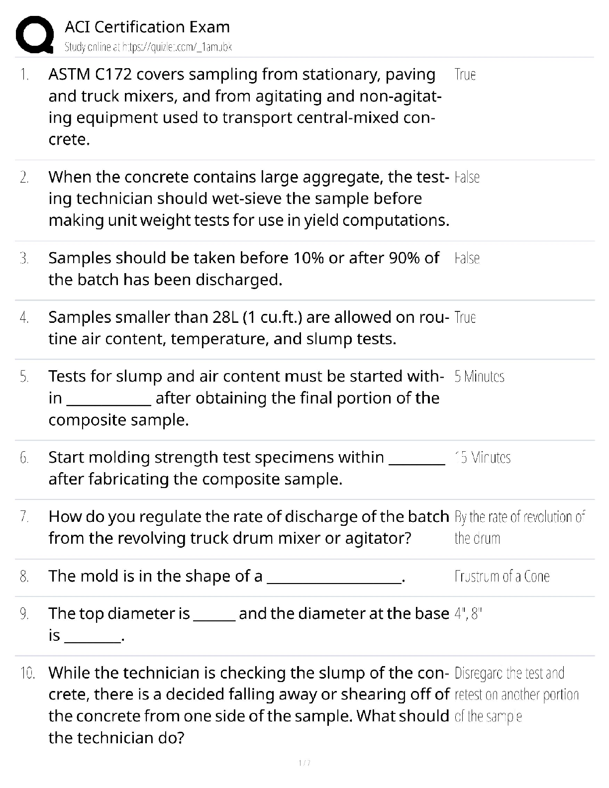 Unlock success in your ACI Certification Exam with our premier 2025/2026 Test Bank. This comprehensive resource is meticulously compiled with the latest questions and detailed, verified answers to cover all critical areas of the exam. Master key topics such as ASTM C172 standards, proper concrete sampling techniques from various mixers, slump and air content testing procedures, and specimen molding. Our study guide is specifically designed to simulate the real exam environment, boosting your confidence and ensuring you have the knowledge to pass on your very first attempt. Avoid the stress of resits and fast-track your certification with this essential ACI exam preparation tool.