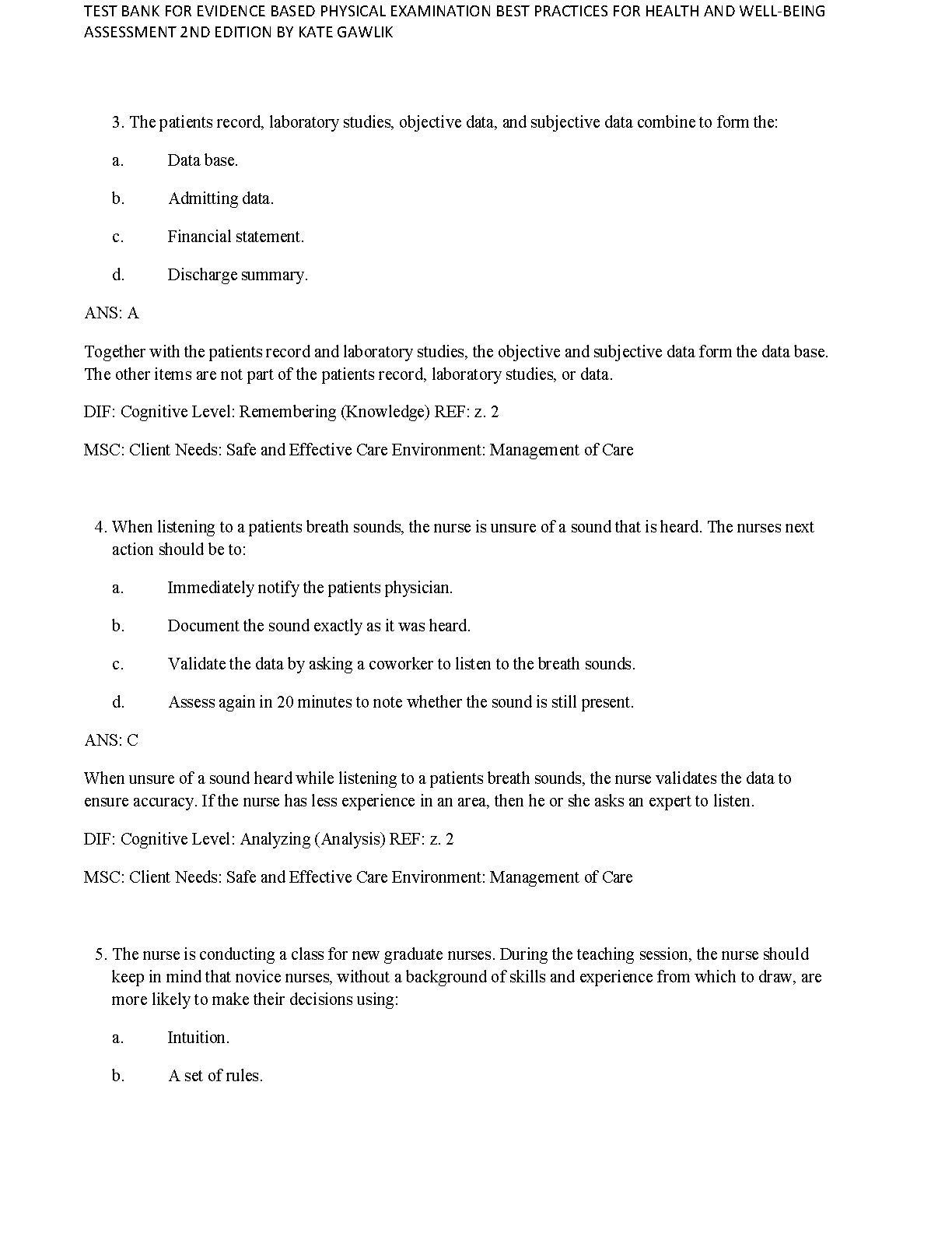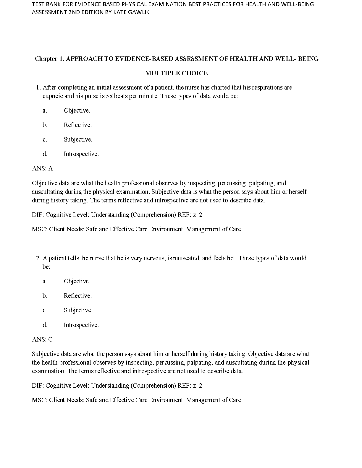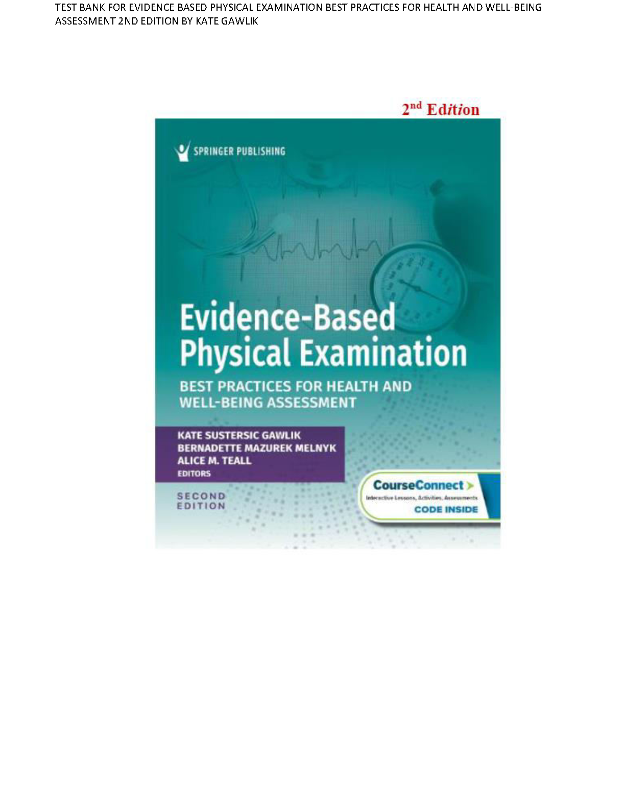 Test Bank for Evidence-Based Physical Examination: Best Practices for Health and Well-Being Assessment, 2nd Edition by Kate Sustersic Gawlik, Bernadette Mazurek Melnyk, & Alice M. Teall