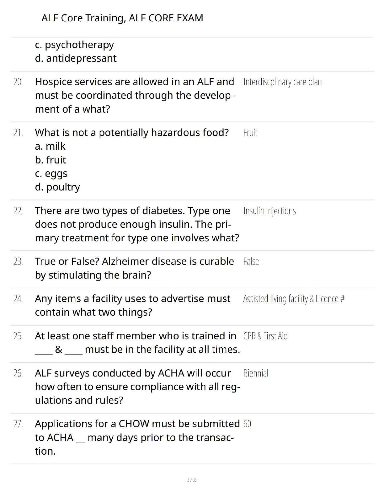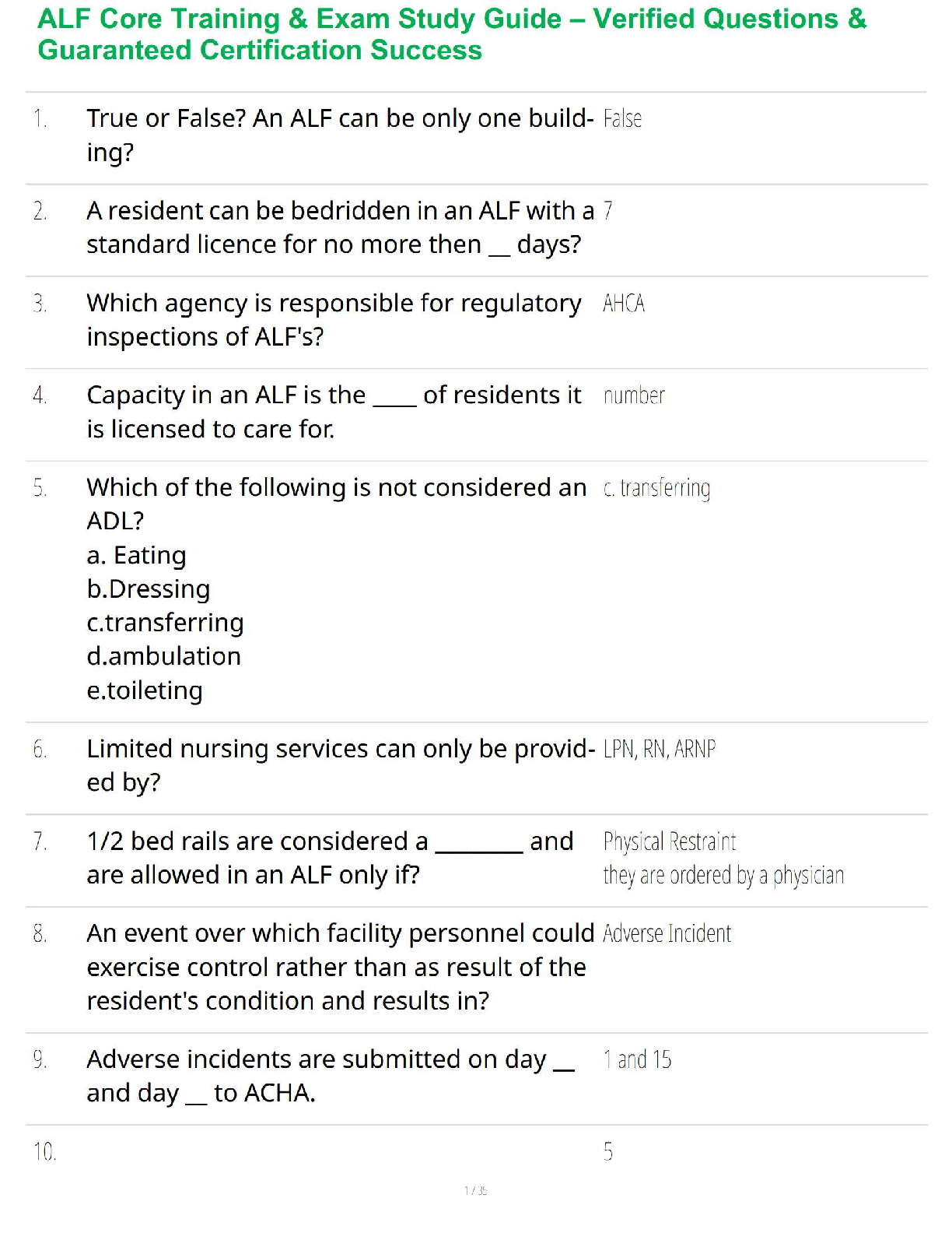 Prepare to pass your Assisted Living Facility (ALF) Core Training certification exam with confidence! Our newly updated 2025/2026 test bank is the ultimate study tool designed to help you succeed on your first attempt. This comprehensive guide features verified questions and detailed, accurate answers covering all critical topics, including resident rights, ADLs, AHCA regulations, and facility operations. Stop worrying about resits and secure your certification. Download this essential resource to master the exam content and fast-track your career as an ALF administrator.