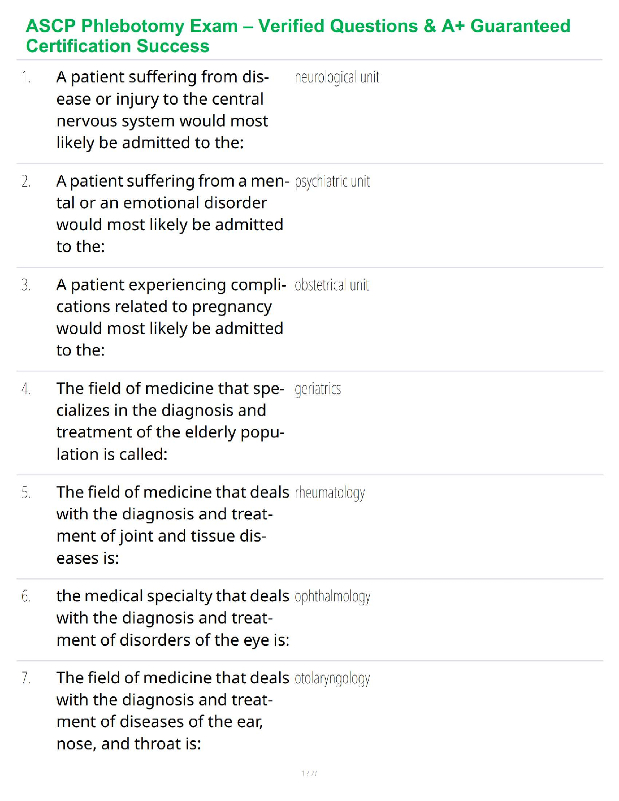 Ace your ASCP Phlebotomy Technician (PBT) certification exam on your very first try with our comprehensive 2025/2026 test bank. This essential study guide is packed with verified questions and detailed, accurate answers covering all critical areas of the phlebotomy curriculum. From medical terminology and hospital units to specific procedures and safety protocols, this resource is designed to give you the confidence and knowledge needed for A+ guaranteed success. Stop worrying about resits and start your career as a certified phlebotomist with the best preparation tool available.
