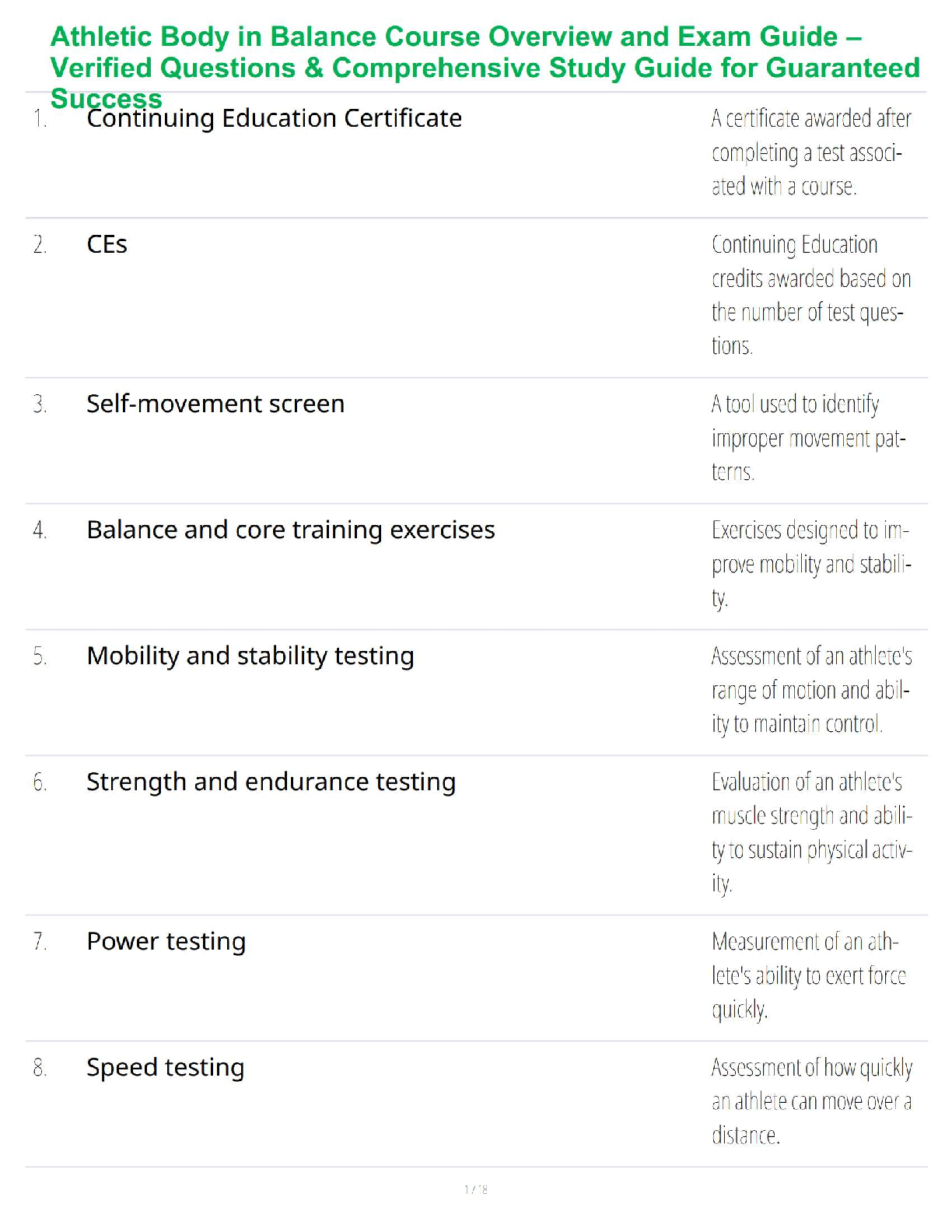 Unlock your potential and ace the Athletic Body in Balance certification exam with our newly updated 2025/2026 study guide. This all-in-one resource, based on Gray Cook's renowned 'Athletic Body in Balance, 2nd Edition,' provides a complete overview and verified exam questions to guarantee your success. Dive deep into crucial topics such as mobility and stability testing, balance and core exercises, self-movement screens, and athletic performance metrics. Perfect for aspiring trainers, physical therapists, and fitness enthusiasts aiming to pass on their first attempt and avoid costly resits. Download now for guaranteed success!