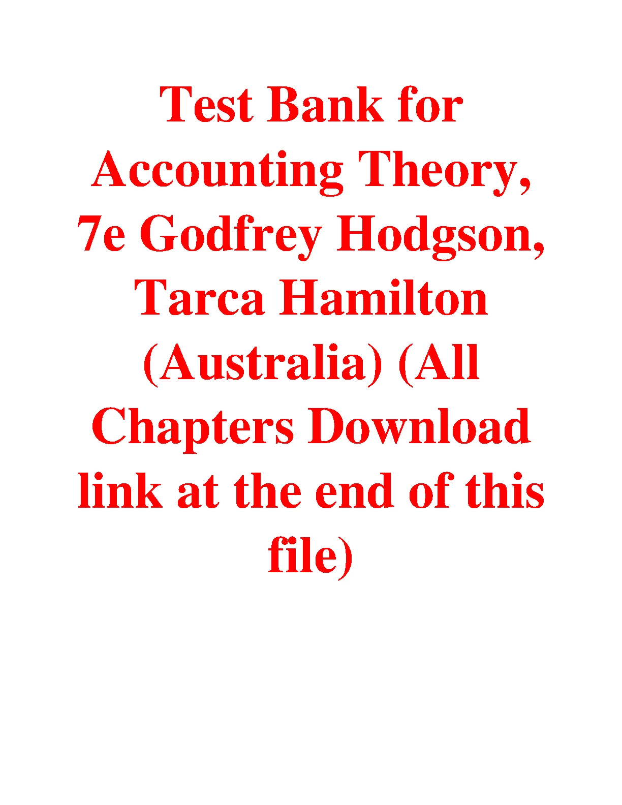 Test Bank for Accounting Theory, 7th Edition by Godfrey Hodgson, Tarca Hamilton (Australia) (All Chapters Download link at the end of this file). DOWNLOAD on www.hackedexams.com INSTANTLY.