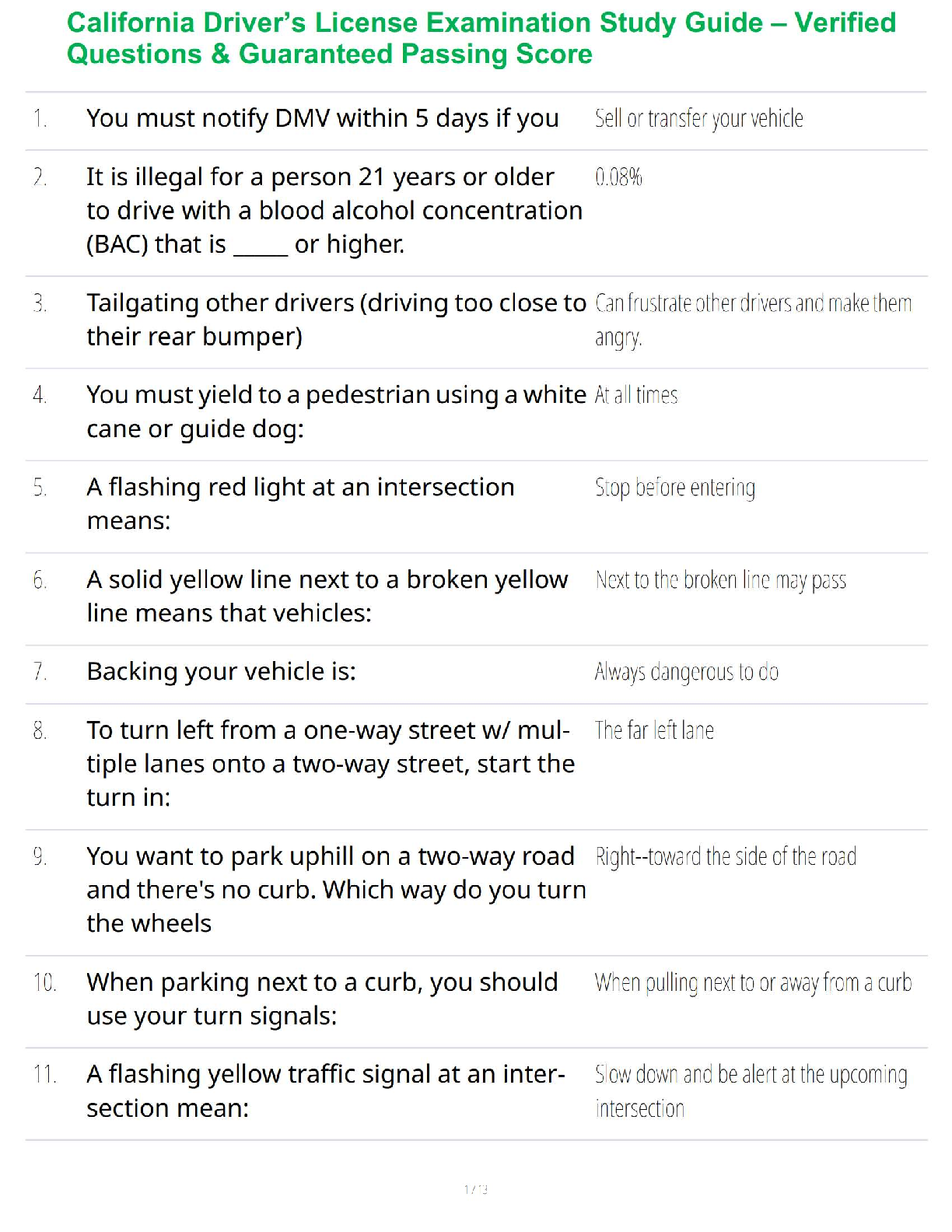 Ace your California DMV written exam with our comprehensive 2025/2026 study guide! This resource is packed with verified questions and correct answers that mirror the real permit test. Designed to help you pass on your very first attempt, this guide covers all crucial topics, including traffic laws, road signs, and safe driving practices. Stop worrying about resits and start studying smart. Download now to gain the confidence and knowledge needed to earn your driver's license!