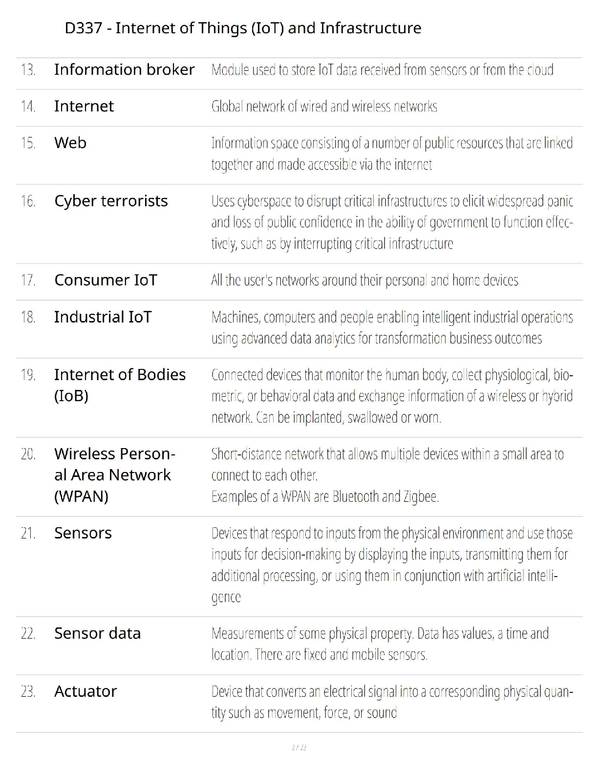 Unlock success in your WGU D337 course with this ultimate exam preparation study guide for the 2025/2026 academic year. This verified resource covers all essential concepts for 'Internet of Things (IoT) and Infrastructure,' breaking down complex topics into easy-to-understand definitions. Designed to help you master the material efficiently and pass your certification exam on the very first attempt, avoiding costly resits. Get the edge you need to ace your WGU studies.
