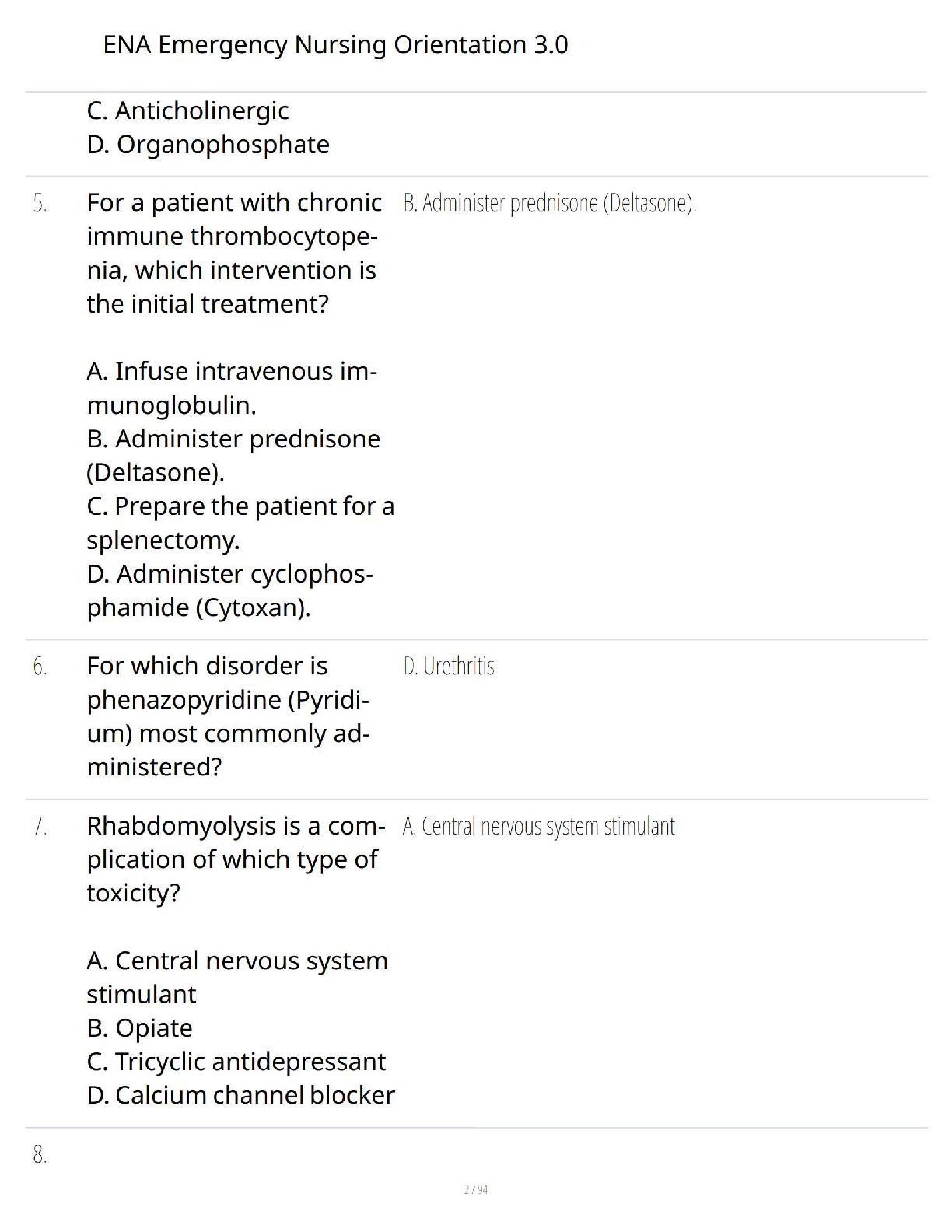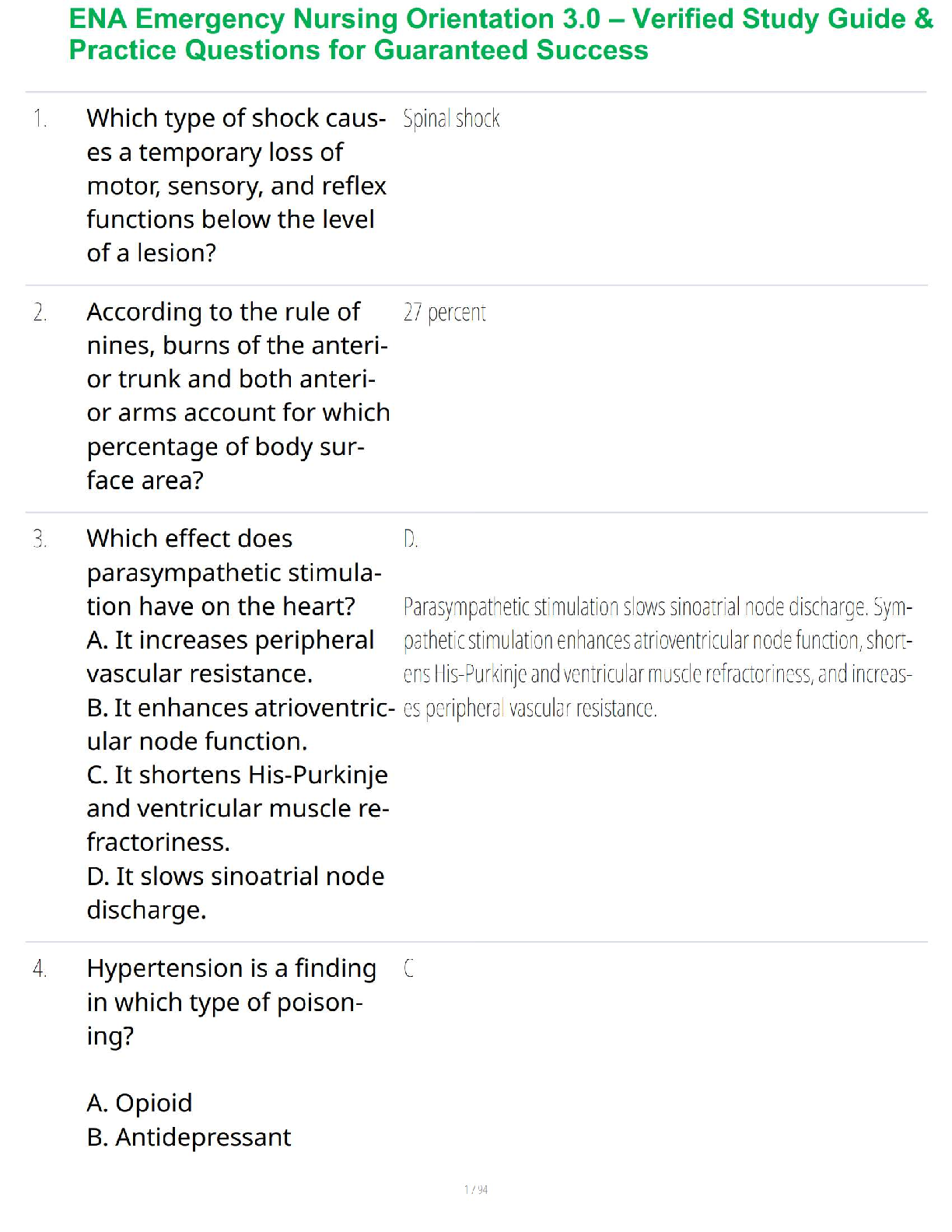 ENA Emergency Nursing Orientation 3.0 (Emergency Nurses Association) Test Bank - Complete Practice Questions & Answers