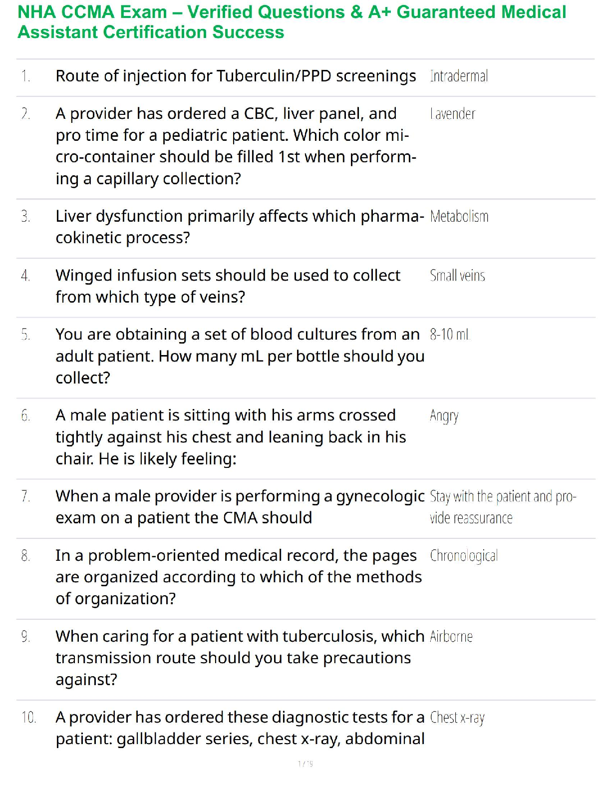 NHA CCMA Exam Test Bank 2025/2026: Verified Q&A for First-Attempt Certification Success