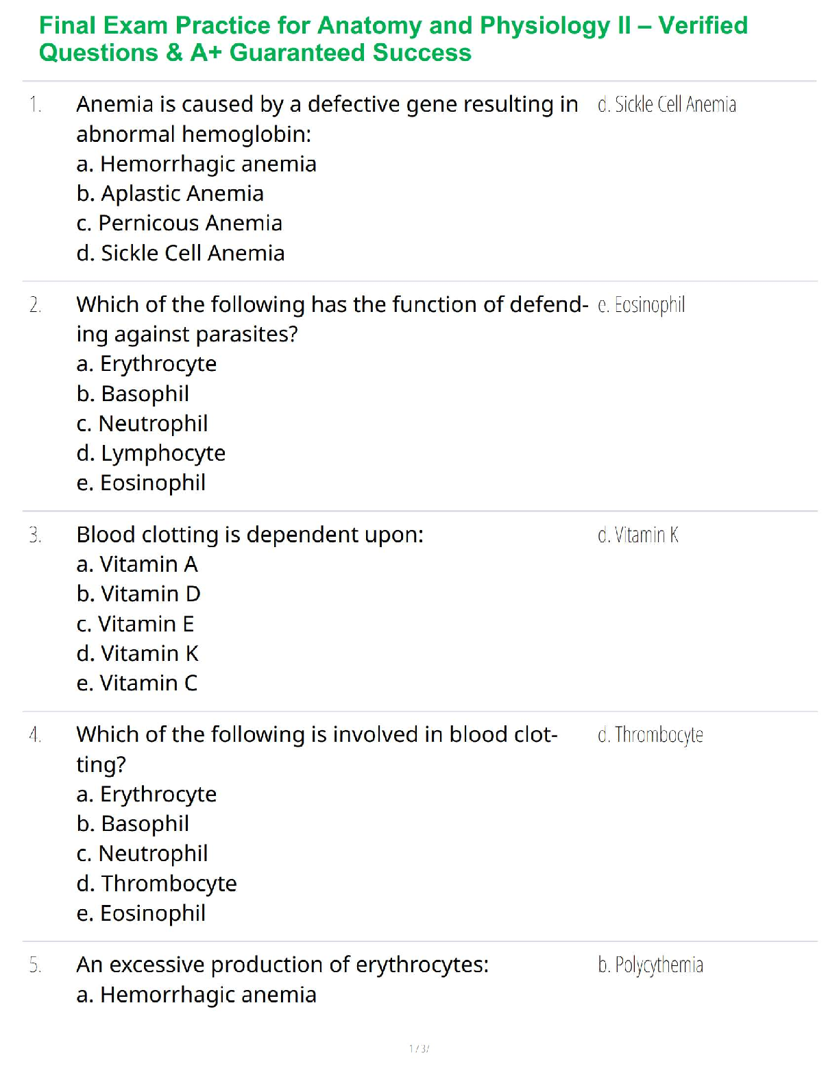 Ace your Anatomy and Physiology II final exam with this comprehensive Test Bank for Marieb & Hoehn's Anatomy & Physiology, 12th Edition. This essential study resource provides a vast collection of verified questions and detailed answers, covering all key topics for the A&P II curriculum. Updated for the 2025/2026 academic year, this guide is expertly designed to help you understand complex concepts, practice with exam-style questions, and pass your course with an A+ on the first attempt. Stop stressing about resits and start studying smarter today!