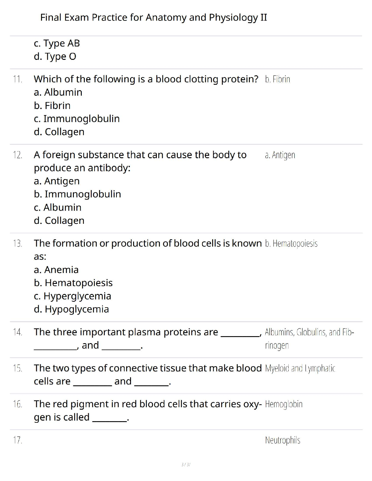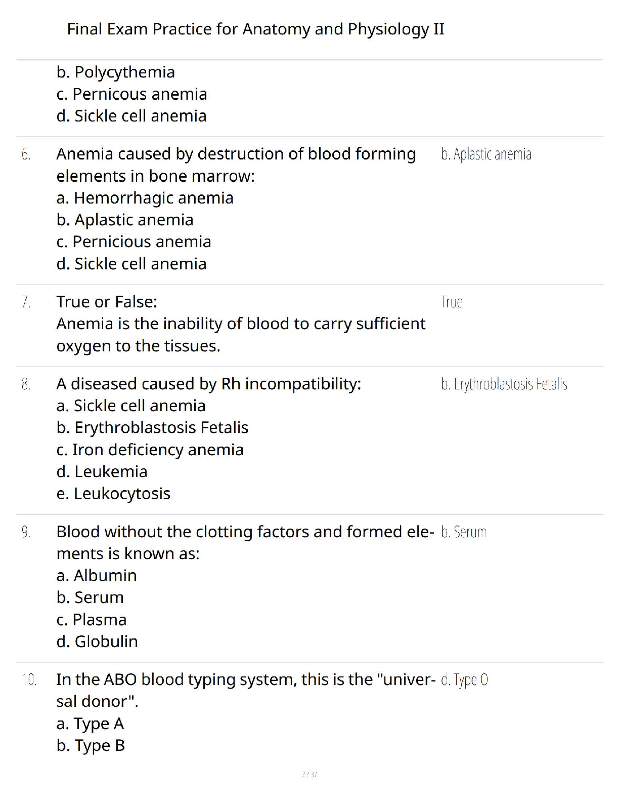 Anatomy and Physiology II Final Exam Test Bank (Q&A) for Anatomy & Physiology, 12th Edition by Elaine N. Marieb & Katja Hoehn