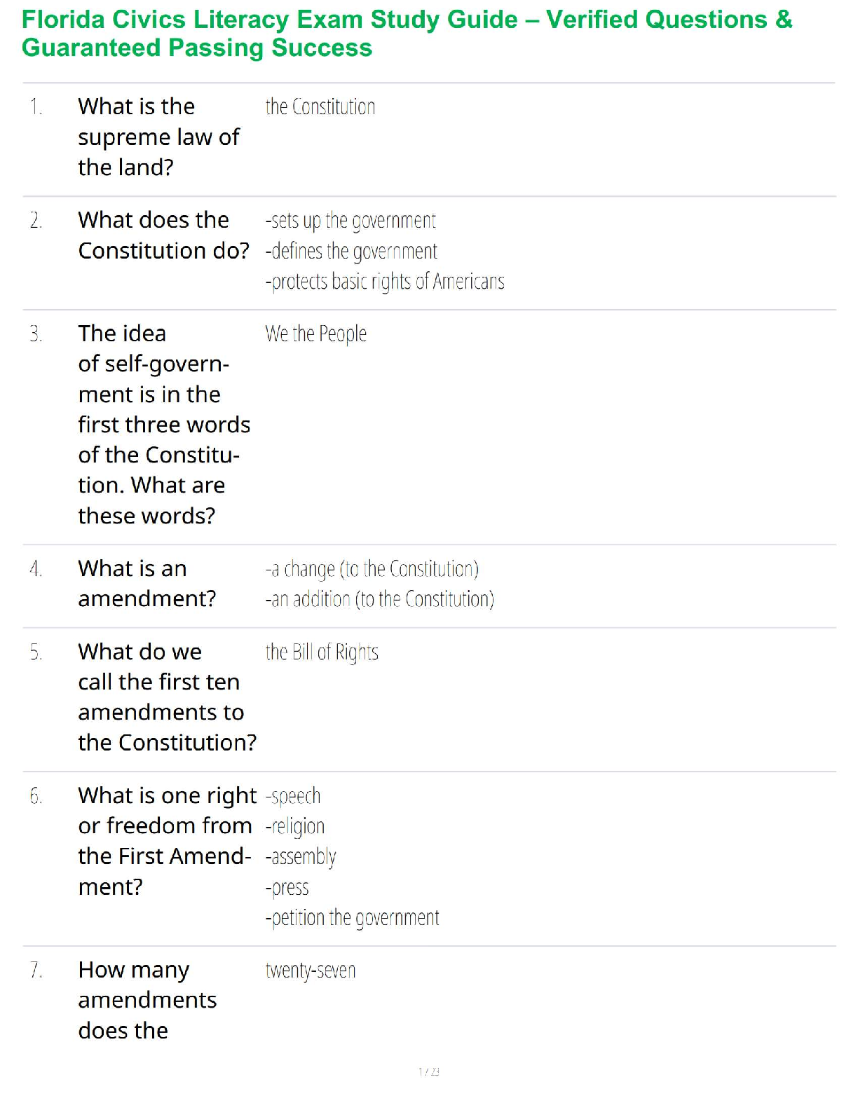 Florida Civics Literacy Exam (FCLE) Study Guide 2025/2026: Ace Your Test on the First Try with Verified Q&A