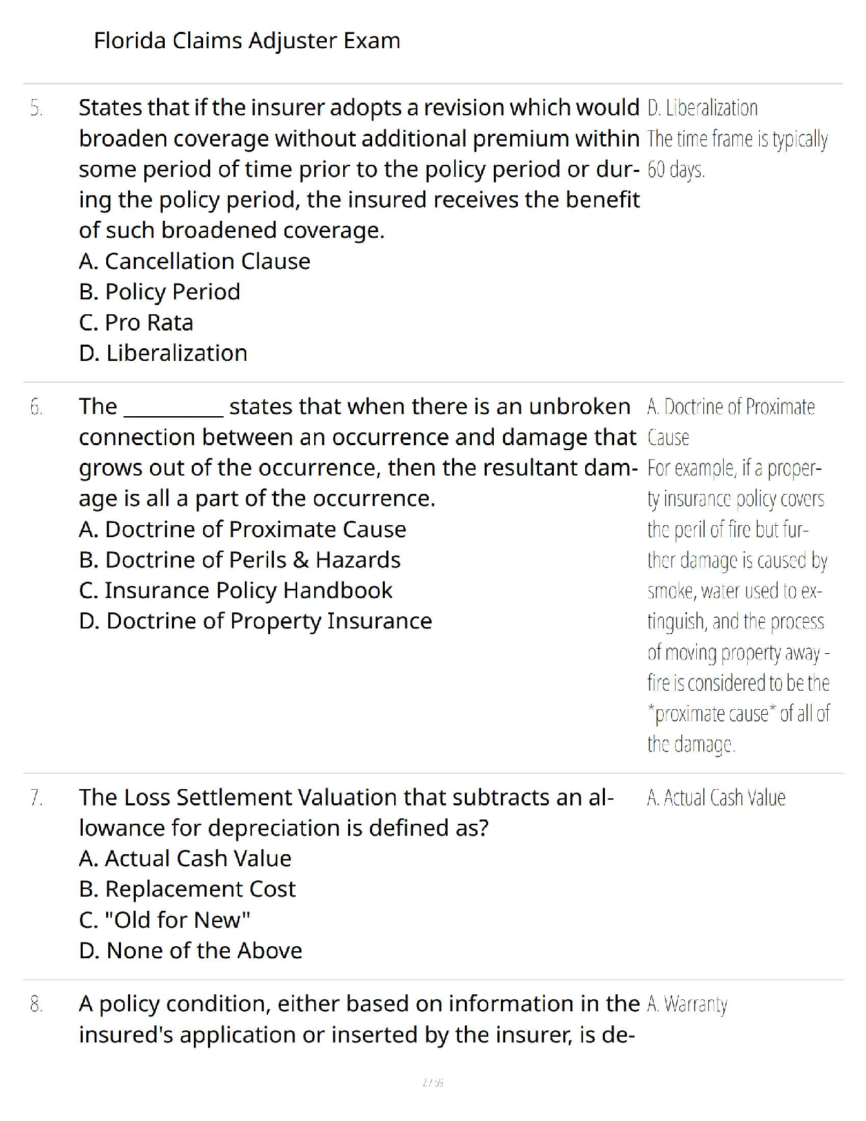 Florida Claims Adjuster Exam Test Bank 2025/2026: Verified Q&A Study Guide to Pass on Your First Attempt