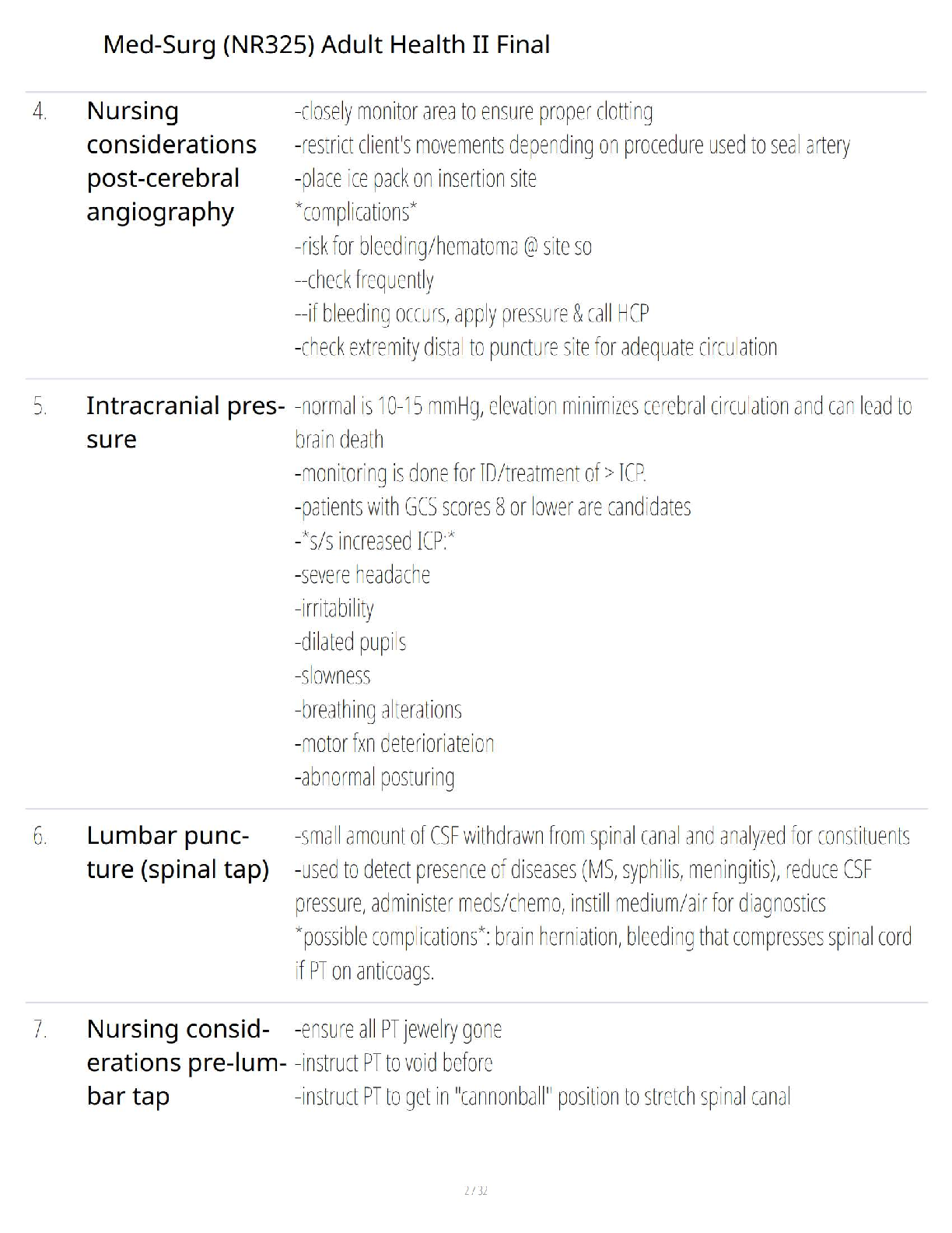 Ace your Med-Surg Adult Health II final exam with this comprehensive and recently updated NR325 study guide for the 2025/2026 academic year. This essential resource is packed with verified, in-depth information on critical topics like neurological diagnostic procedures, cerebral angiography, and key nursing considerations. Designed specifically to help you understand complex concepts and answer exam questions with confidence, this guide is your best bet for avoiding resits and achieving academic success. Download now to secure your A+ and pass on your first attempt!