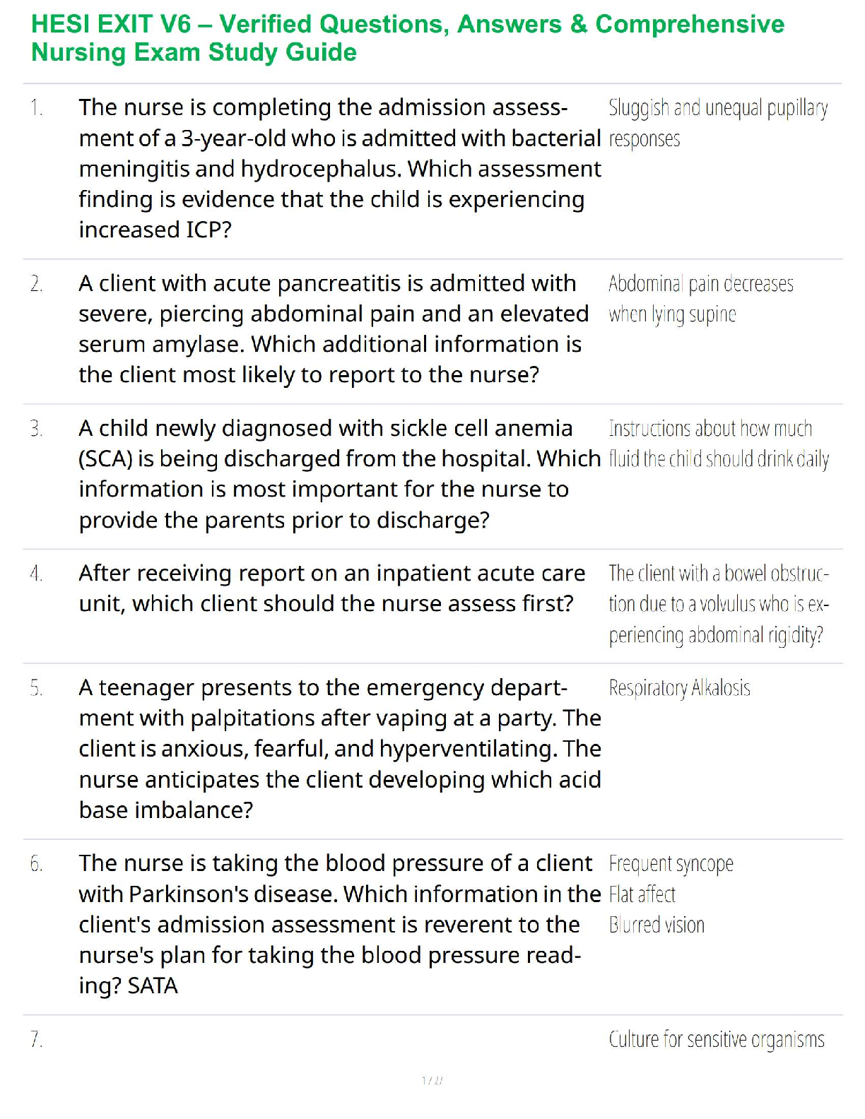HESI EXIT V6 Exam Test Bank: Verified Questions and Answers for Comprehensive Nursing Success