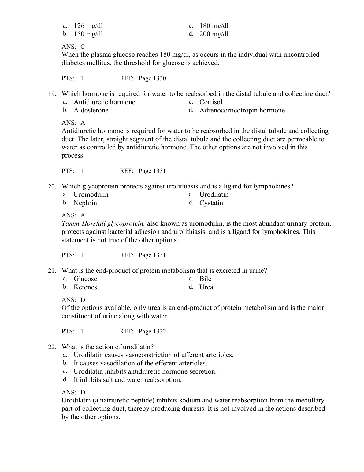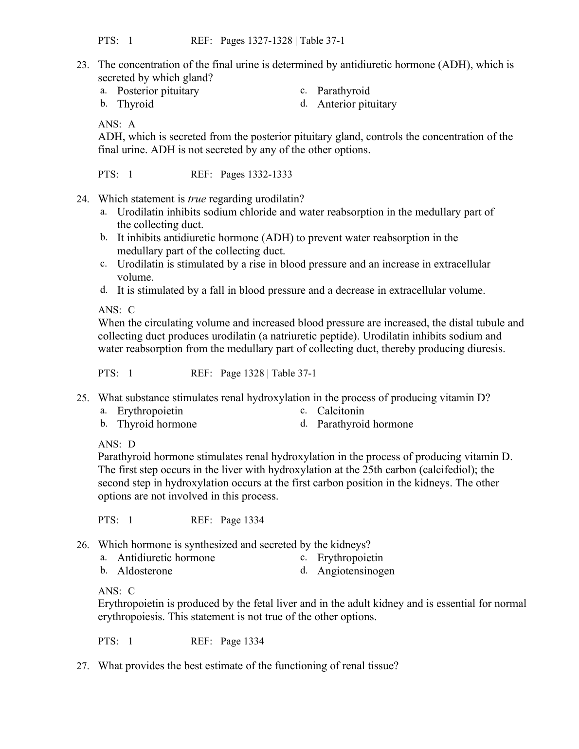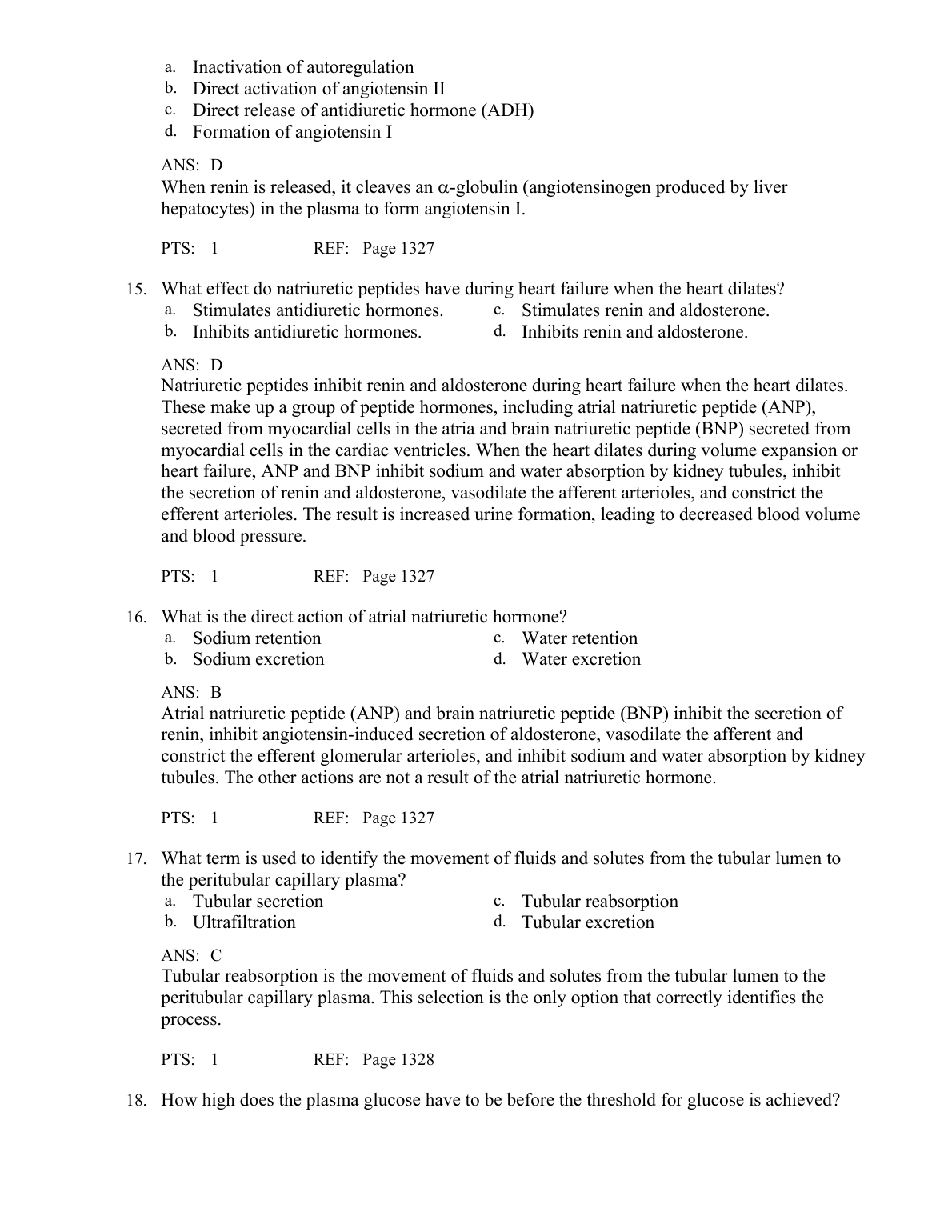Test Bank For Chapter 37: Structure and Function of the Renal and Urologic Systems