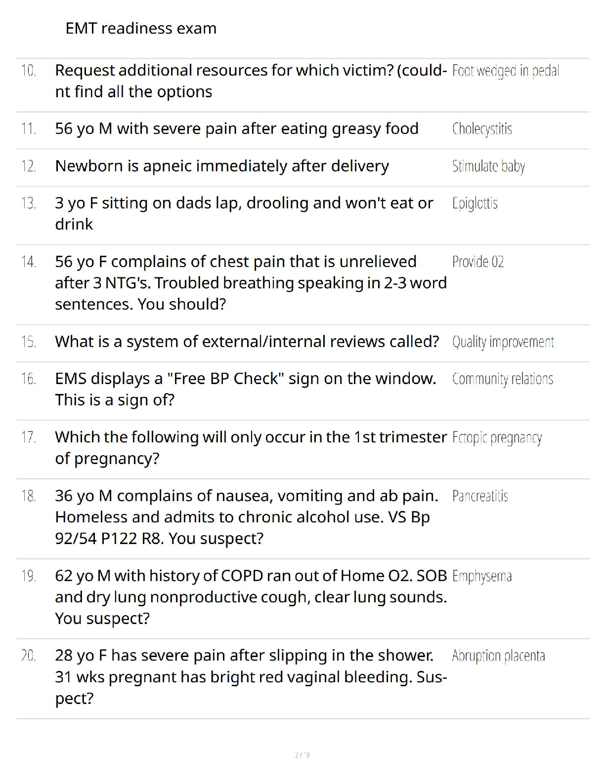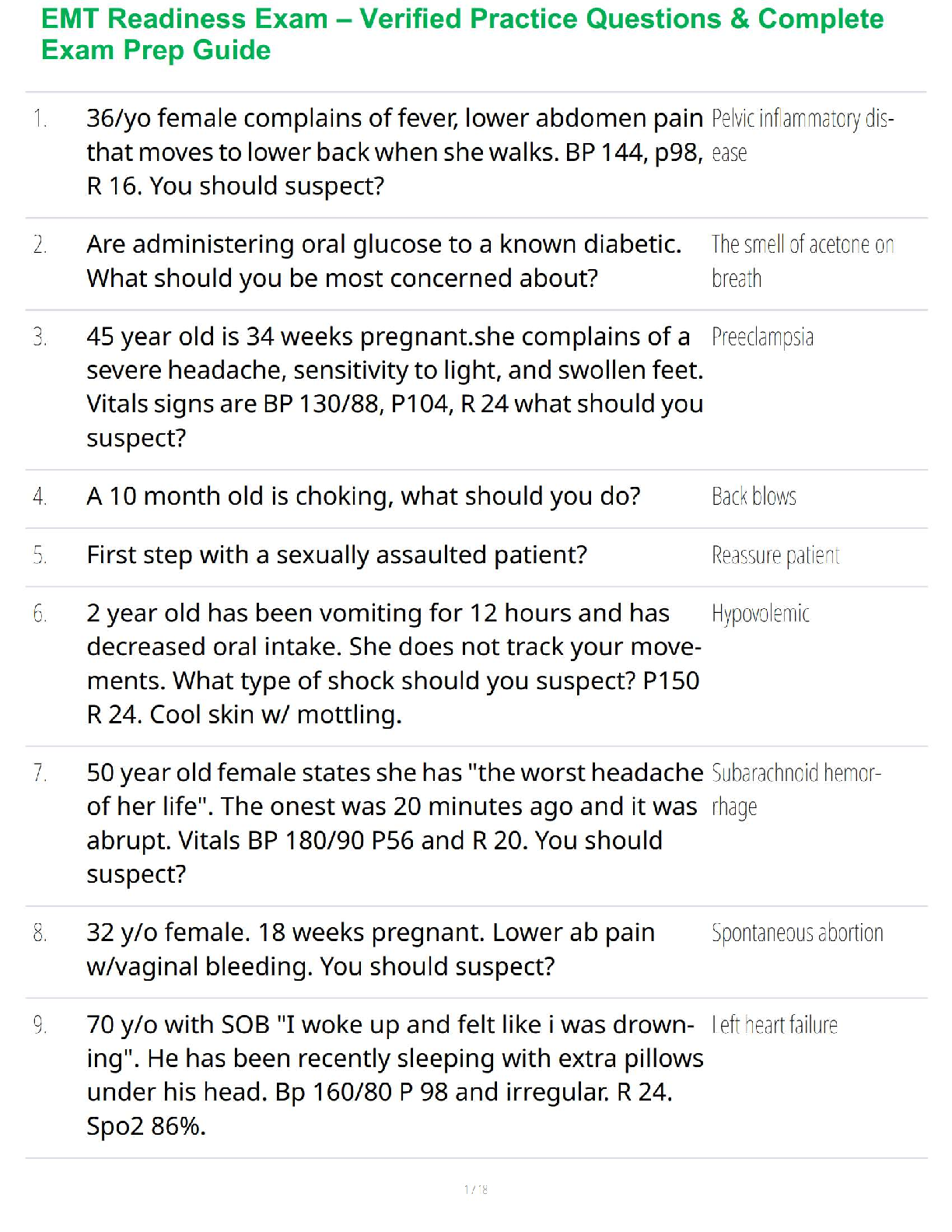 EMT Readiness Exam 2025/2026: Complete Study Guide with Verified Practice Questions & Answers for First-Time Pass
