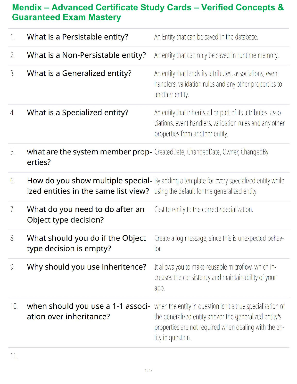 Ace your Mendix Advanced Certificate exam with our latest 2025/2026 test bank! This comprehensive study guide is packed with verified questions and detailed answers covering all critical topics, including persistable vs. non-persistable entities, generalization, specialization, and inheritance. Our expertly crafted content is designed to provide you with the knowledge and confidence needed to master the concepts and pass your certification on the very first try. Stop worrying about resits and start your journey to becoming a Mendix Advanced certified professional today!