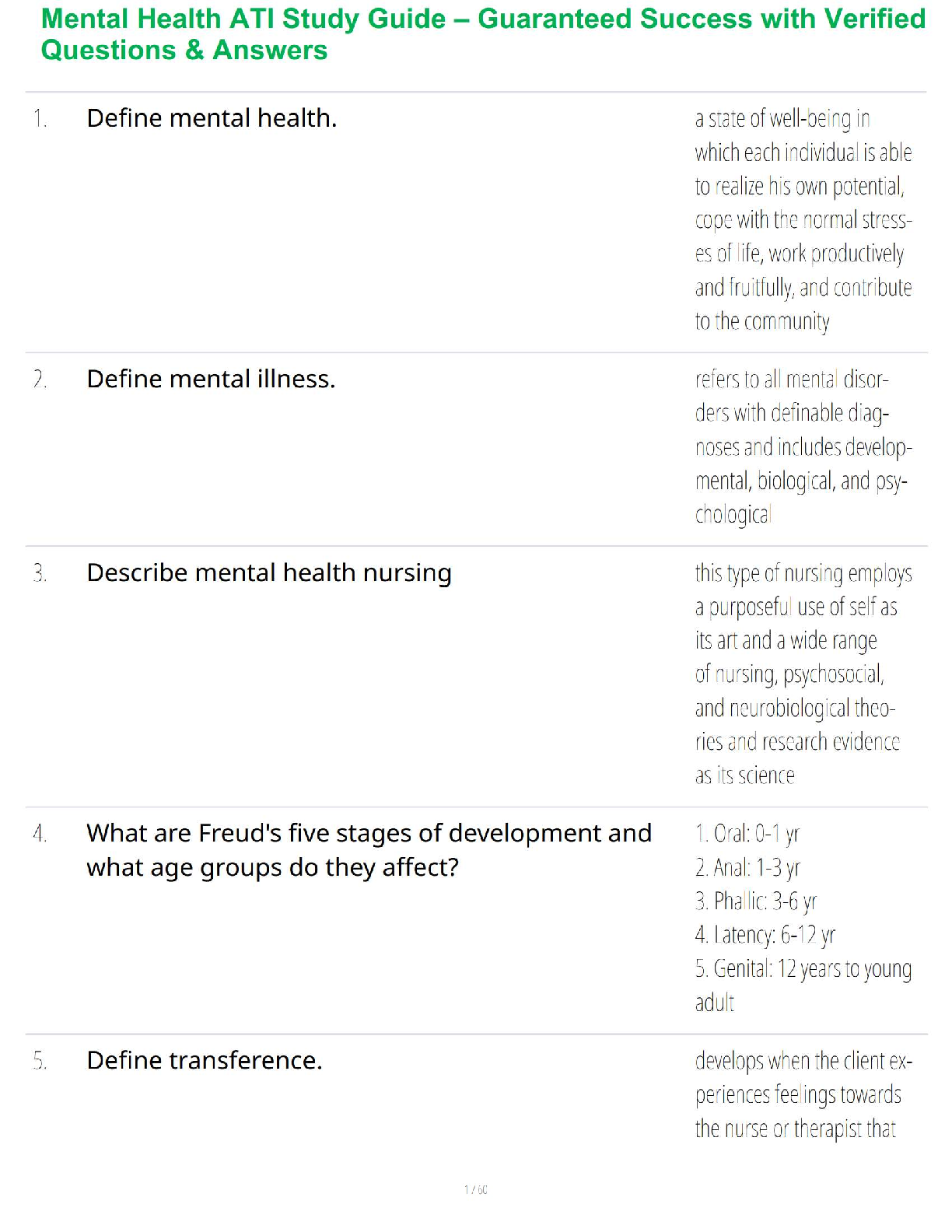 Unlock success in your mental health nursing course with our latest 2025/2026 ATI Study Guide. This comprehensive resource is packed with verified questions and detailed answers, covering essential topics from the fundamentals of mental health to key psychological theories. Specifically designed to help you master the content and pass your ATI exam on the very first try, this guide is your ultimate tool for avoiding resits and building a strong foundation in psychiatric nursing. Get the confidence you need to excel!