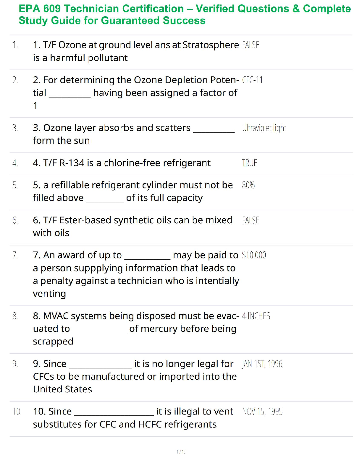 Ace your EPA 609 Technician Certification exam with our newly updated 2025/2026 test bank. This comprehensive resource provides a full collection of verified questions and detailed answers, mirroring the format and content of the real exam. Master essential topics such as refrigerant handling, ozone depletion, safety regulations, and recovery procedures. This study guide is expertly designed to ensure you pass on your first attempt, saving you time and avoiding resits. Get certified confidently and start your HVAC career on the right foot!