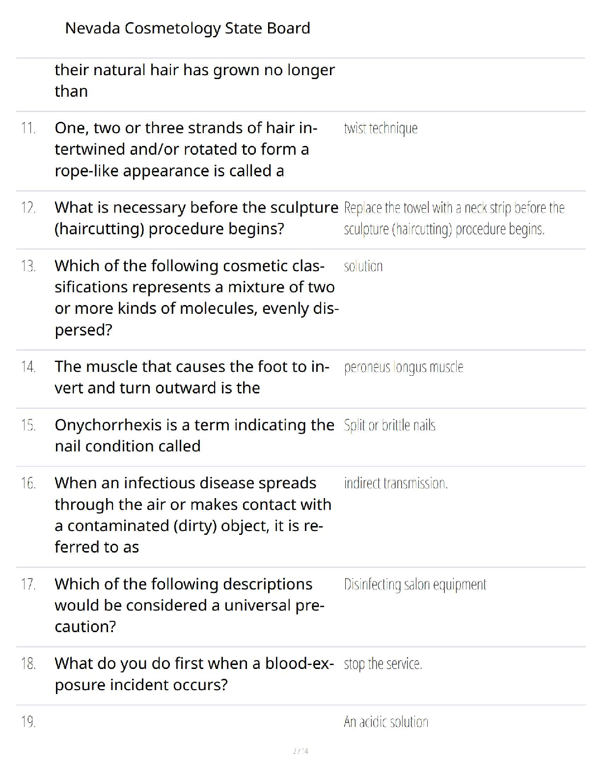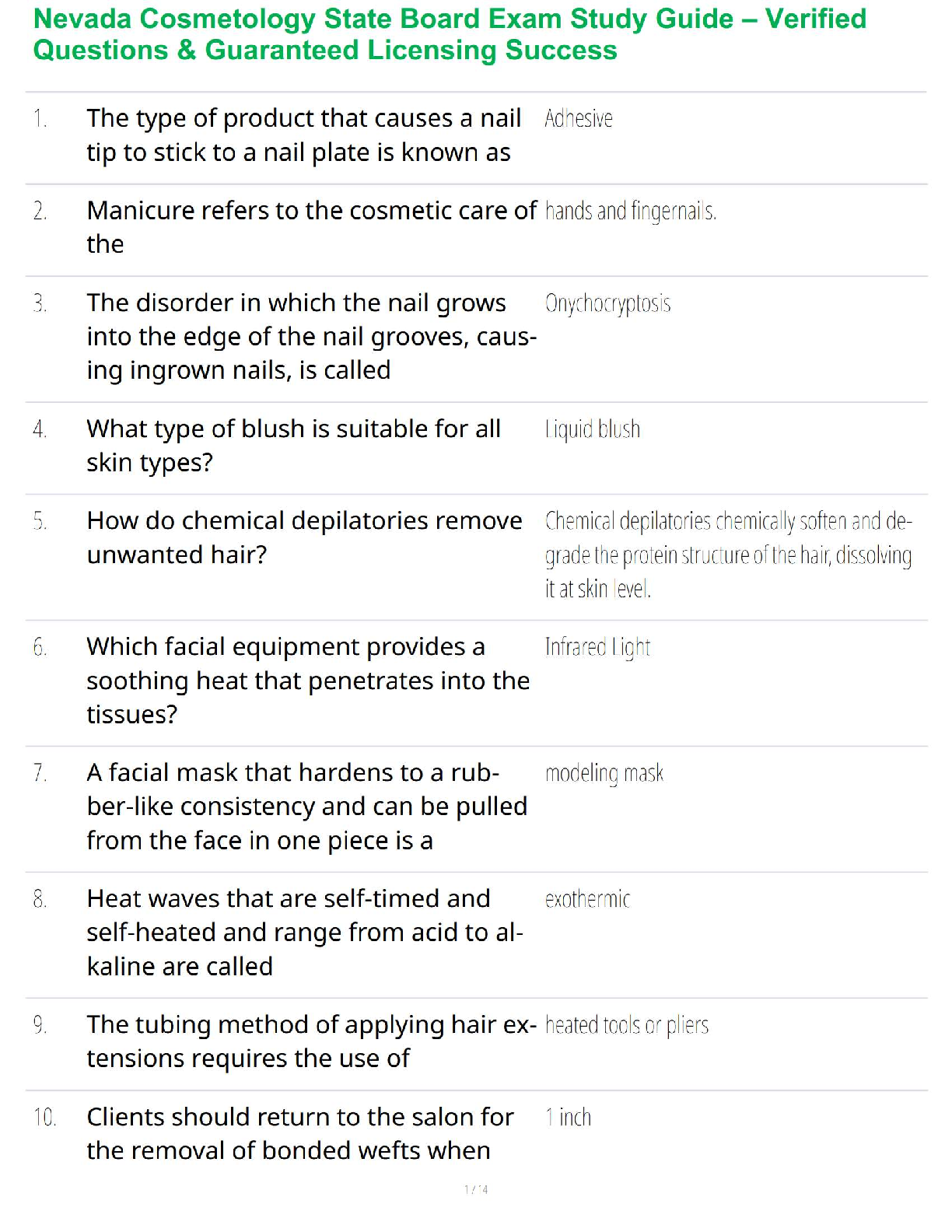 Nevada Cosmetology State Board Exam Test Bank & Study Guide 2025/2026: All Verified Questions with Correct Answers for First-Attempt Success