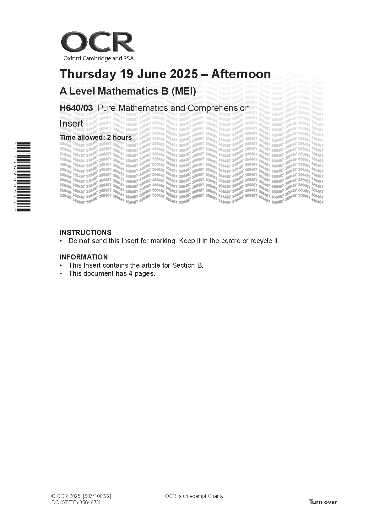 2025 OCR A Level Mathematics B (MEI) Insert (H640/03: Pure Mathematics and Comprehension)