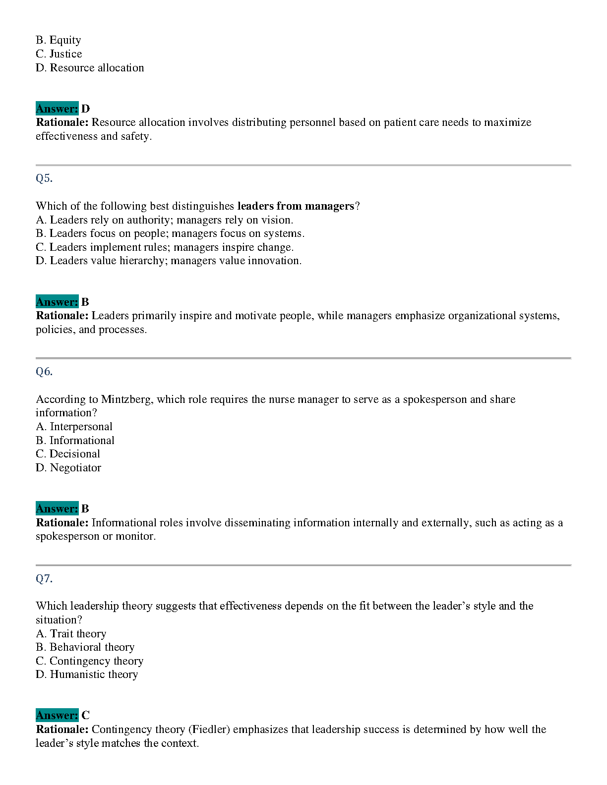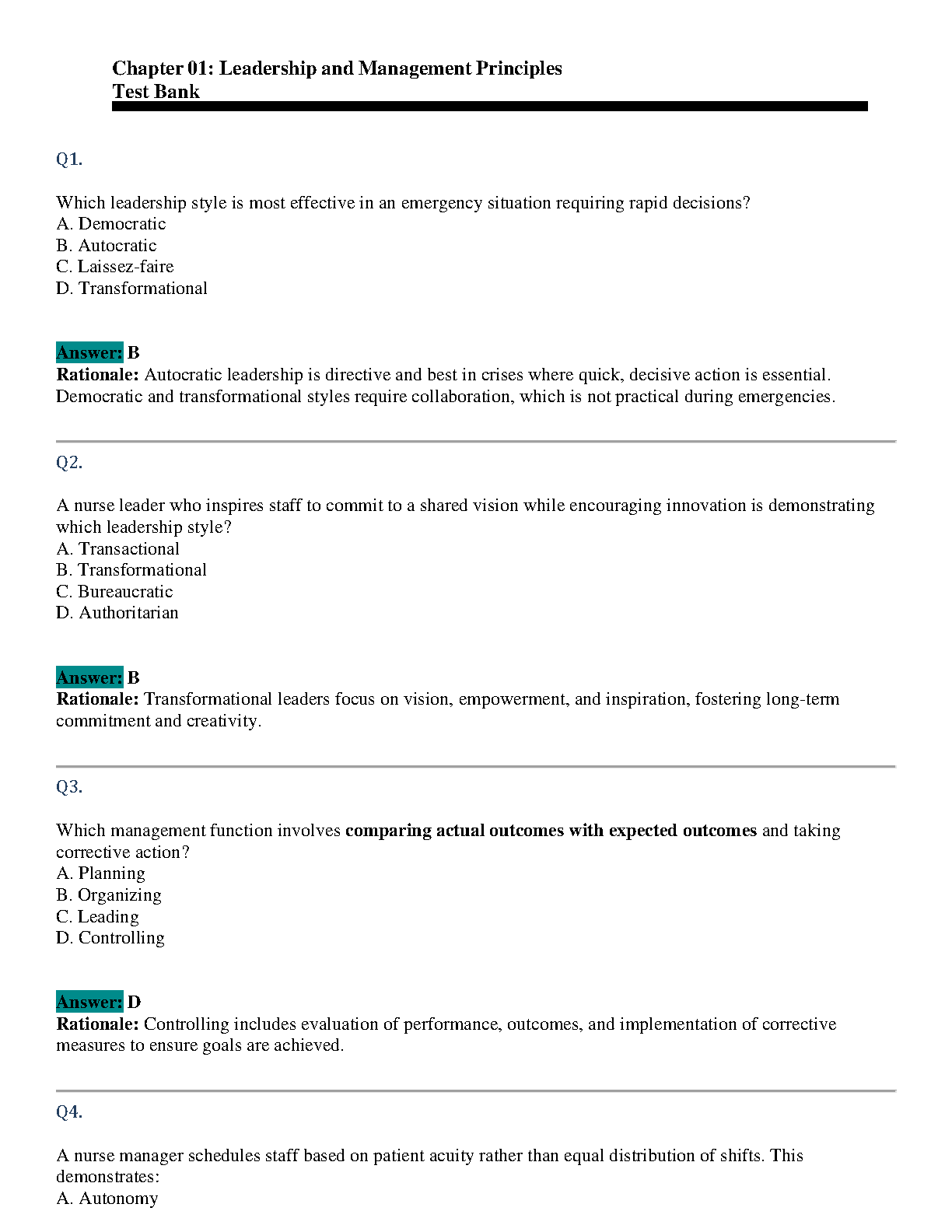 Test Bank for Leadership & Nursing Care Management, 6th Edition by Diane L. Huber & Maria Lindell Joseph