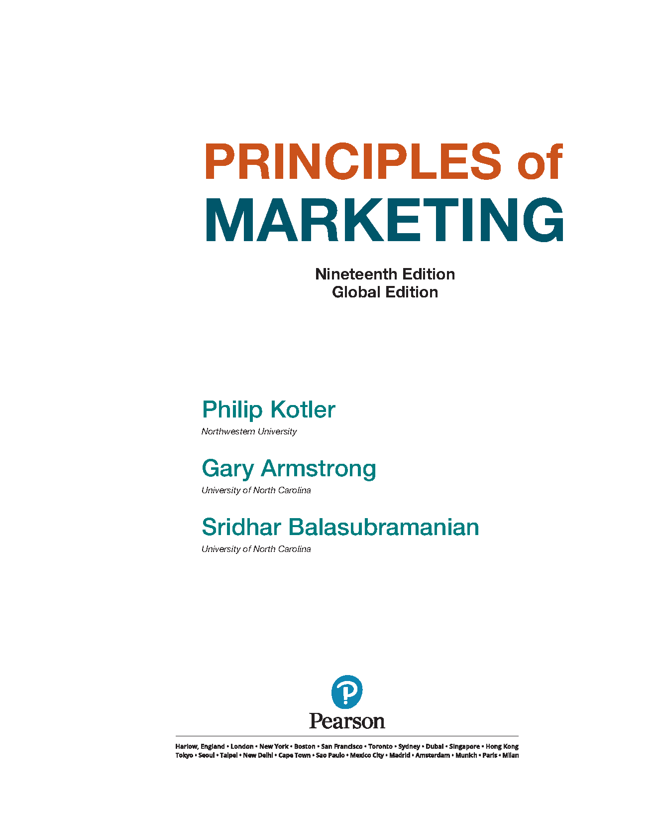 Principles of Marketing, 19th Global Edition by Philip Kotler, Gary Armstrong, Sridhar Balasubramanian - Official Test Bank