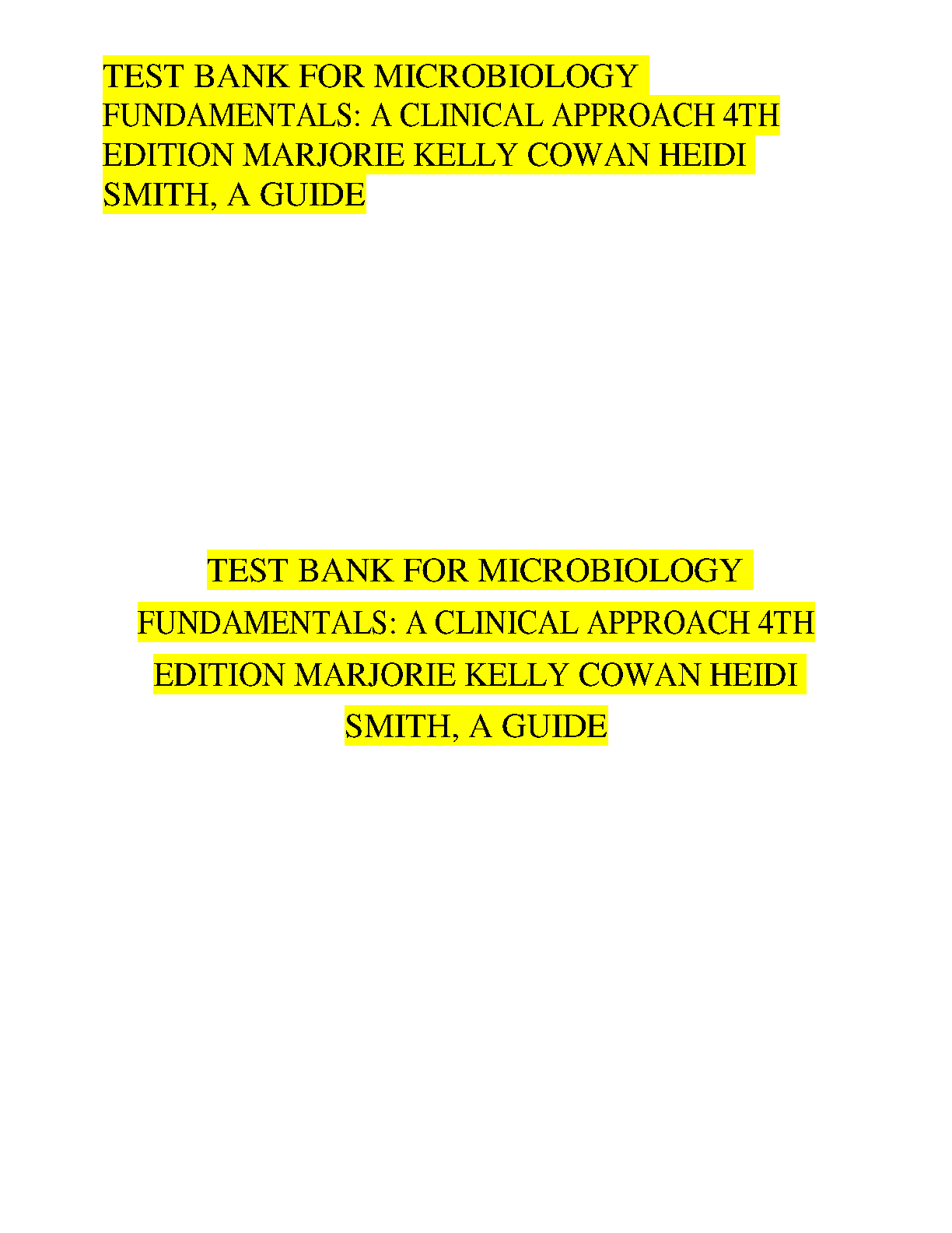Test Bank for Microbiology Fundamentals: A Clinical Approach, 4th Edition by Marjorie Kelly Cowan and Heidi Smith