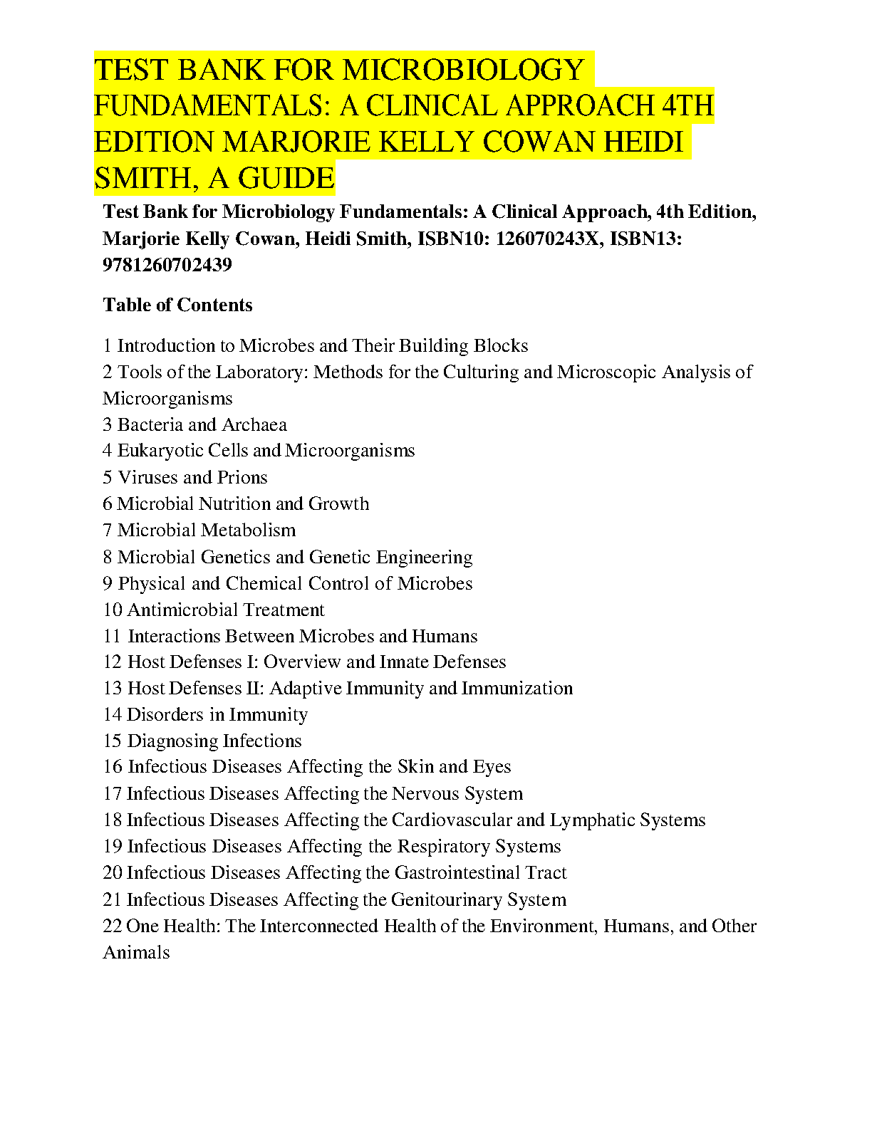 Achieve academic excellence with the official Test Bank for 'Microbiology Fundamentals: A Clinical Approach, 4th Edition' by Cowan and Smith. This comprehensive resource is packed with a wide variety of exam-style questions, including multiple-choice, true/false, and critical thinking problems, covering every chapter of the textbook. Each question comes with a detailed answer and rationale, making it the ultimate study tool to master key concepts, prepare effectively for exams, and boost your final grade. Instantly downloadable and easy to navigate, this test bank is your key to success in microbiology.