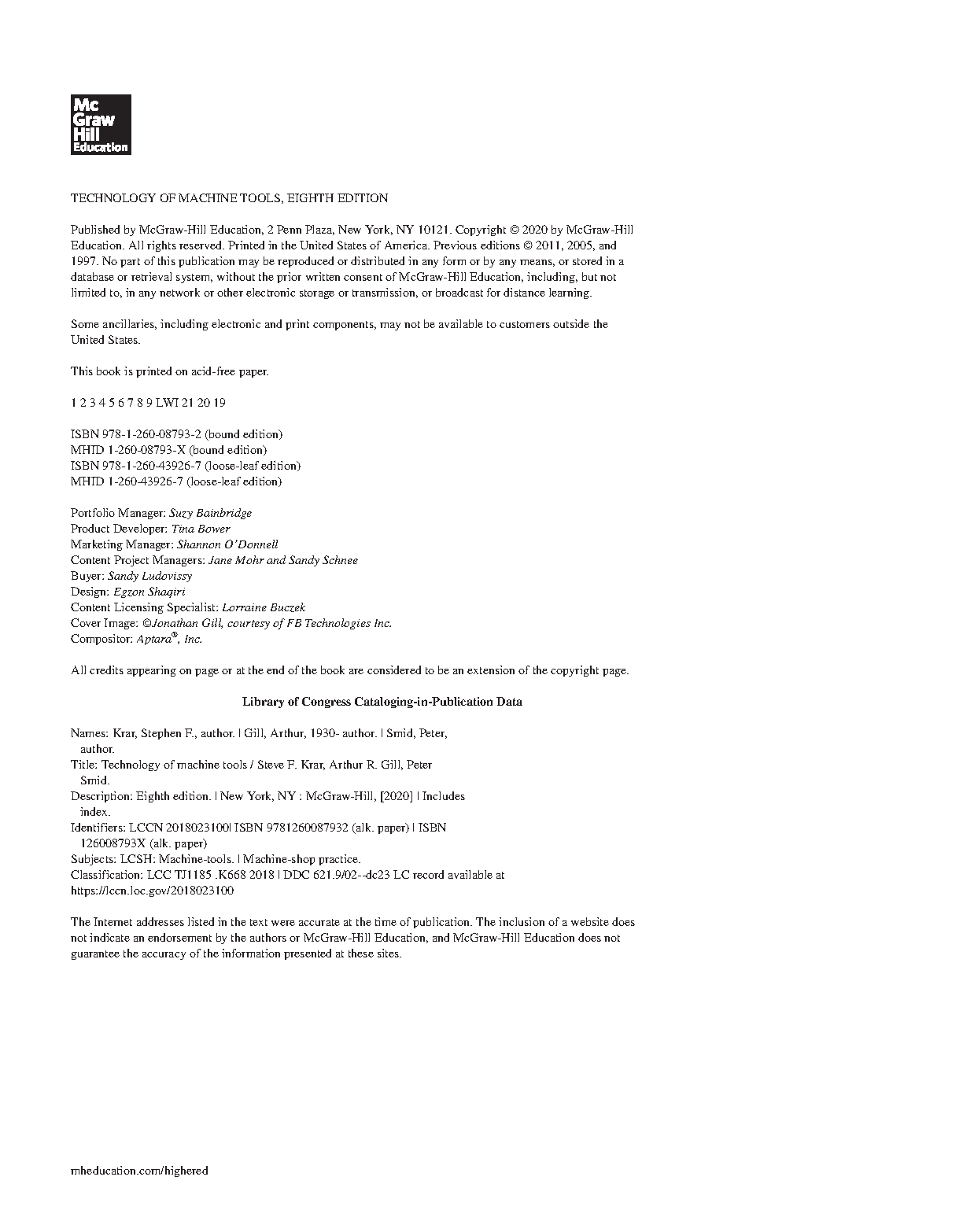 Test Bank for Technology of Machine Tools, 8th Edition by Steve F. Krar, Arthur R. Gill, and Peter Smid