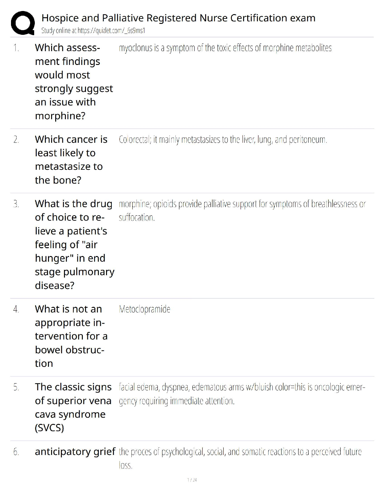 Master the material for your Hospice and Palliative Registered Nurse Certification (CHPN) exam with our comprehensive test bank, fully updated for the 2025/2026 testing year. This essential study guide features a wide array of practice questions and detailed, verified answers covering all critical domains of palliative nursing. Dive into key topics such as advanced symptom management, oncologic emergencies like Superior Vena Cava Syndrome (SVCS), end-of-life care pharmacology, and the psychosocial aspects of patient care, including anticipatory grief. Our targeted Q&A format is expertly designed to boost your confidence, streamline your study process, and ensure you pass the CHPN exam on your very first attempt. Get the edge you need to become a certified hospice and palliative care nurse today!