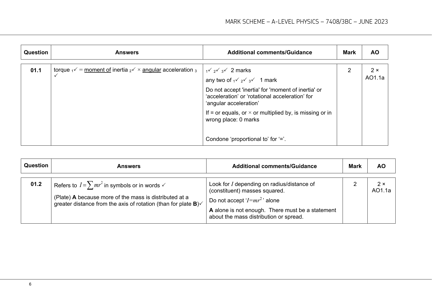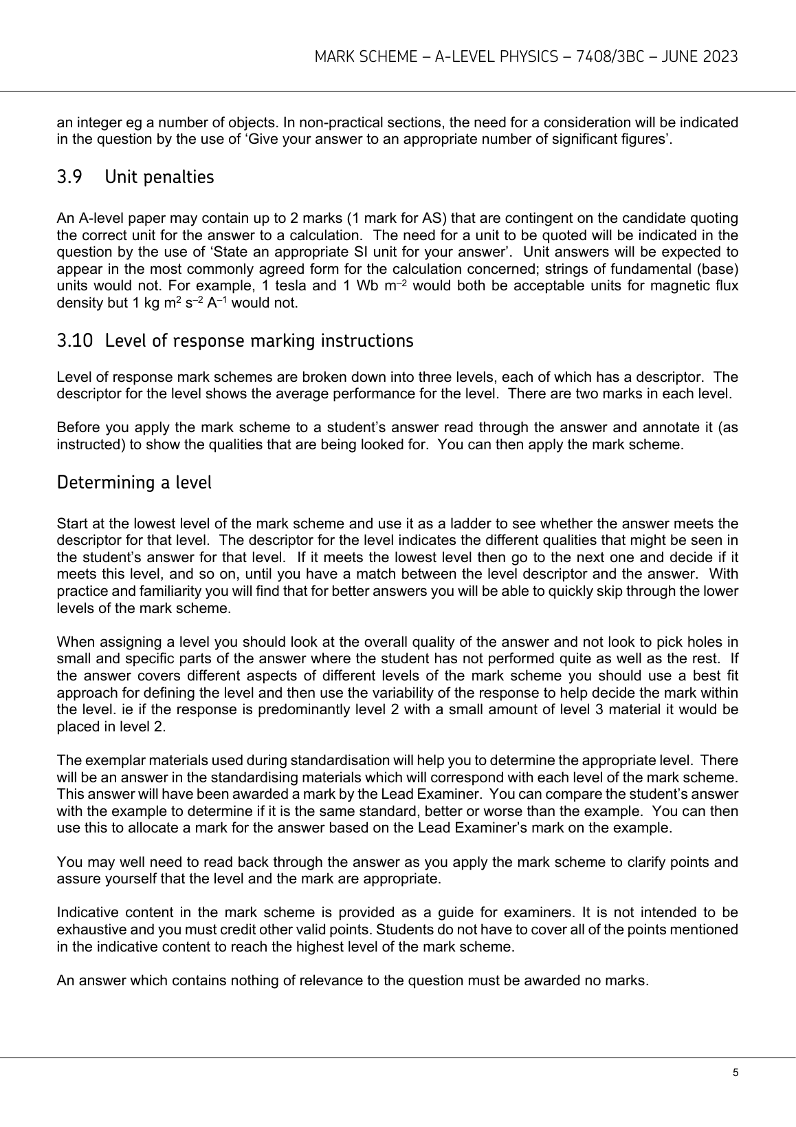 AQA A LEVEL PHYSICS PAPER 3 JUNE 2023 MARK SCHEME (7408/3BC: Engineering physics).