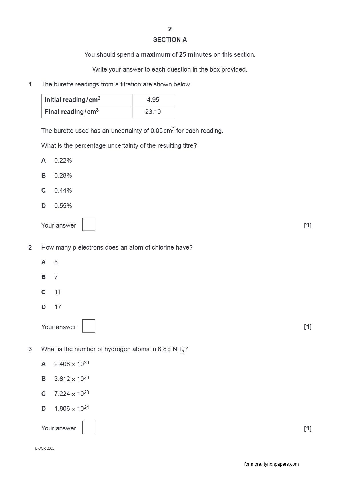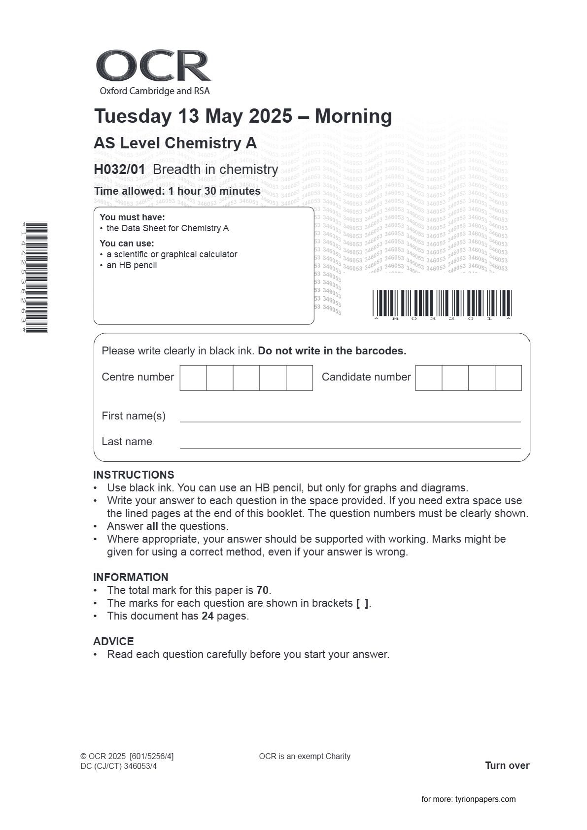 Master Your Exams: OCR AS Level Chemistry A (H032/01) Breadth in Chemistry May 2025 Question Paper | New 2025/2026 Edition for First-Time Success
