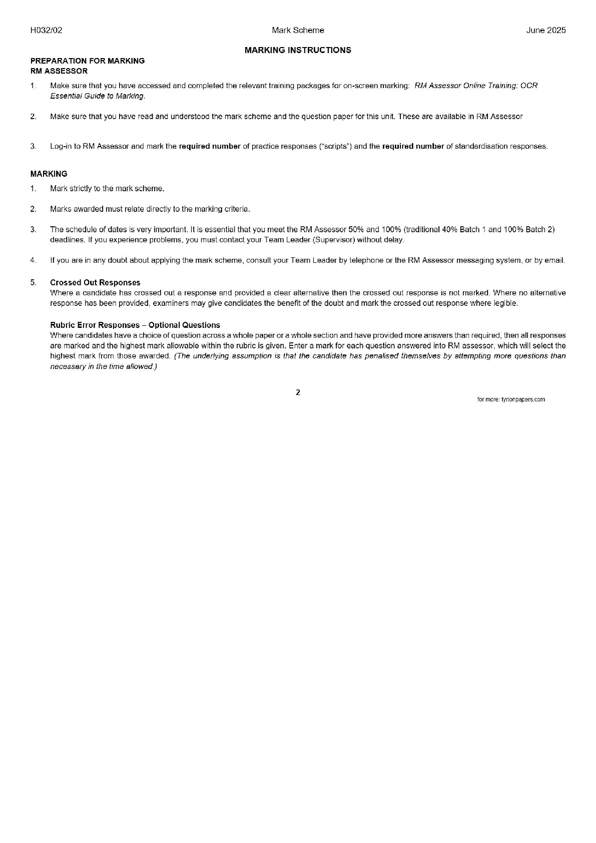 Ace your exams with the official June 2025 Mark Scheme for OCR AS Level Chemistry A (H032/02): Depth in Chemistry. This newly released resource for the 2025/2026 academic year provides complete, step-by-step solutions and marking criteria. Master the content, perfect your answers, and gain the confidence to pass your exams on your first try, leaving resits behind.