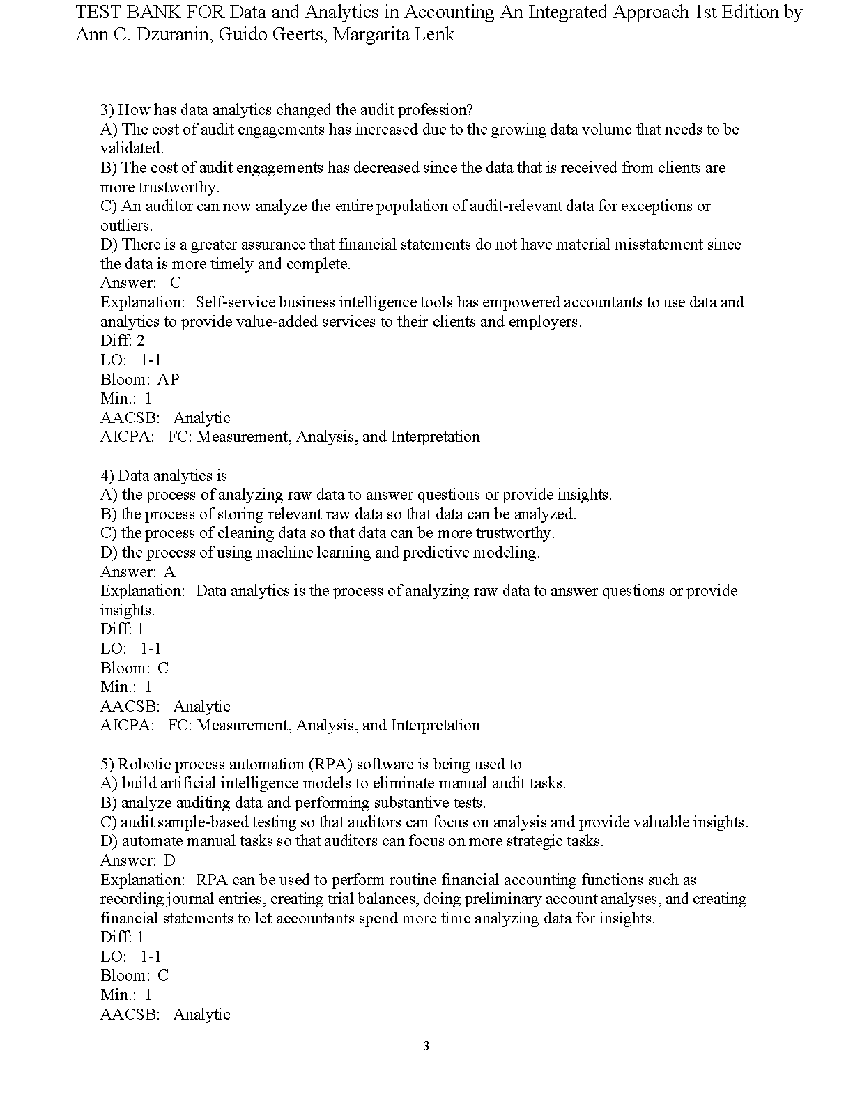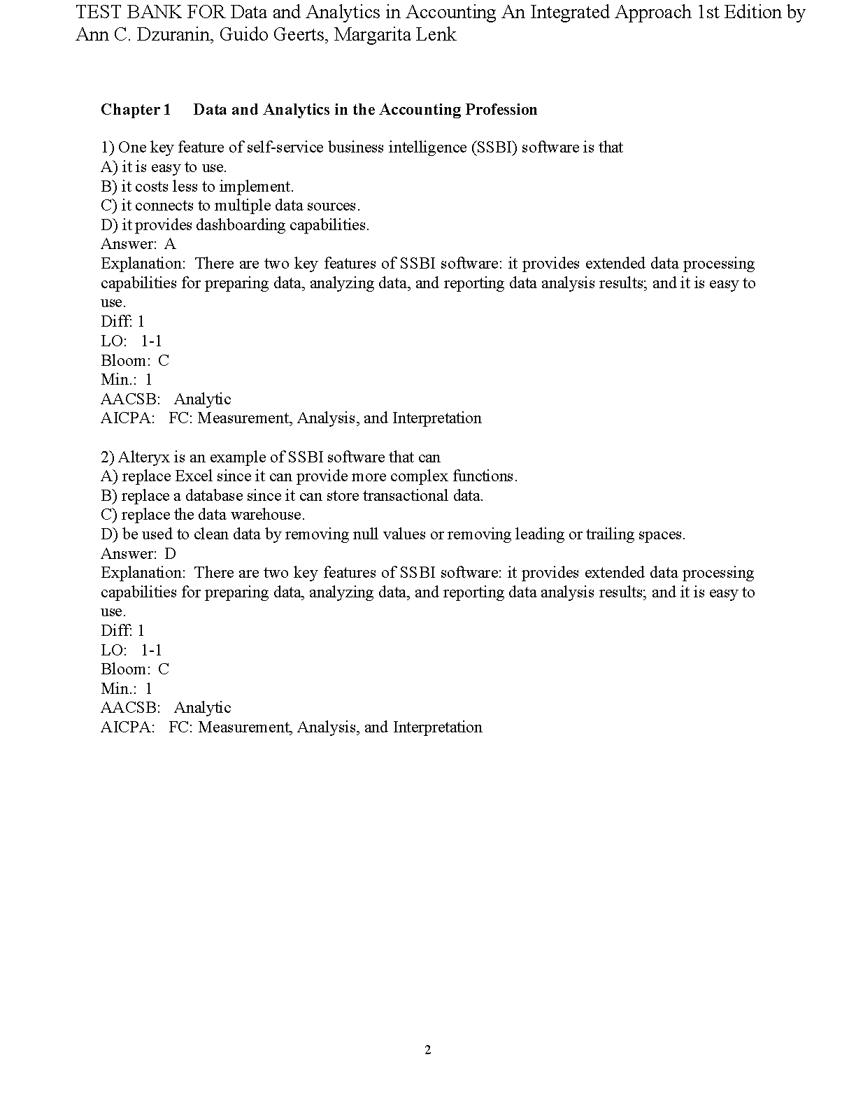 Test Bank for Data and Analytics in Accounting: An Integrated Approach, 1st Edition by Ann C. Dzuranin, Guido Geerts, Margarita Lenk